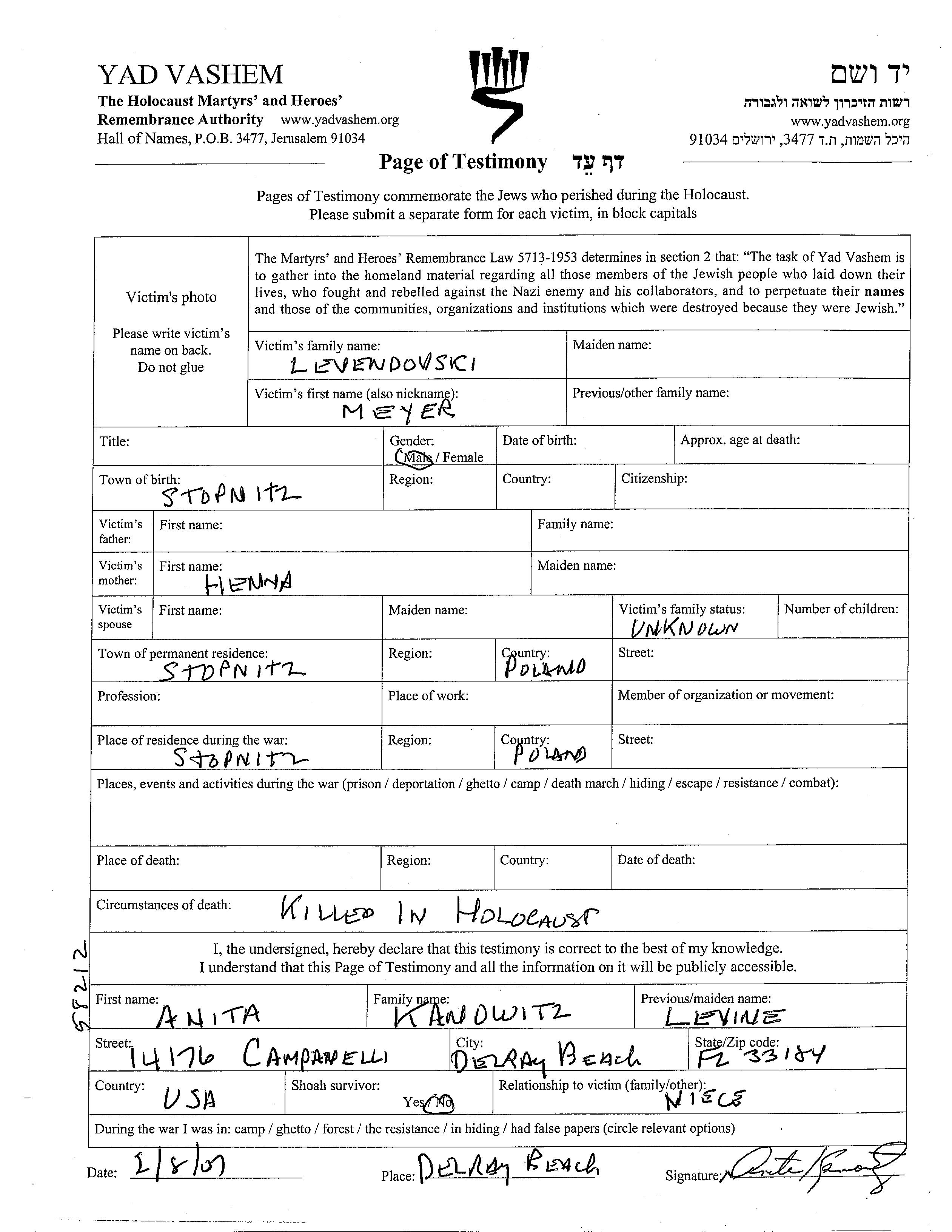 Поиск подателя Листа свидетельских показаний. Поиск по любому имени, включая уменьшительное или прозвище