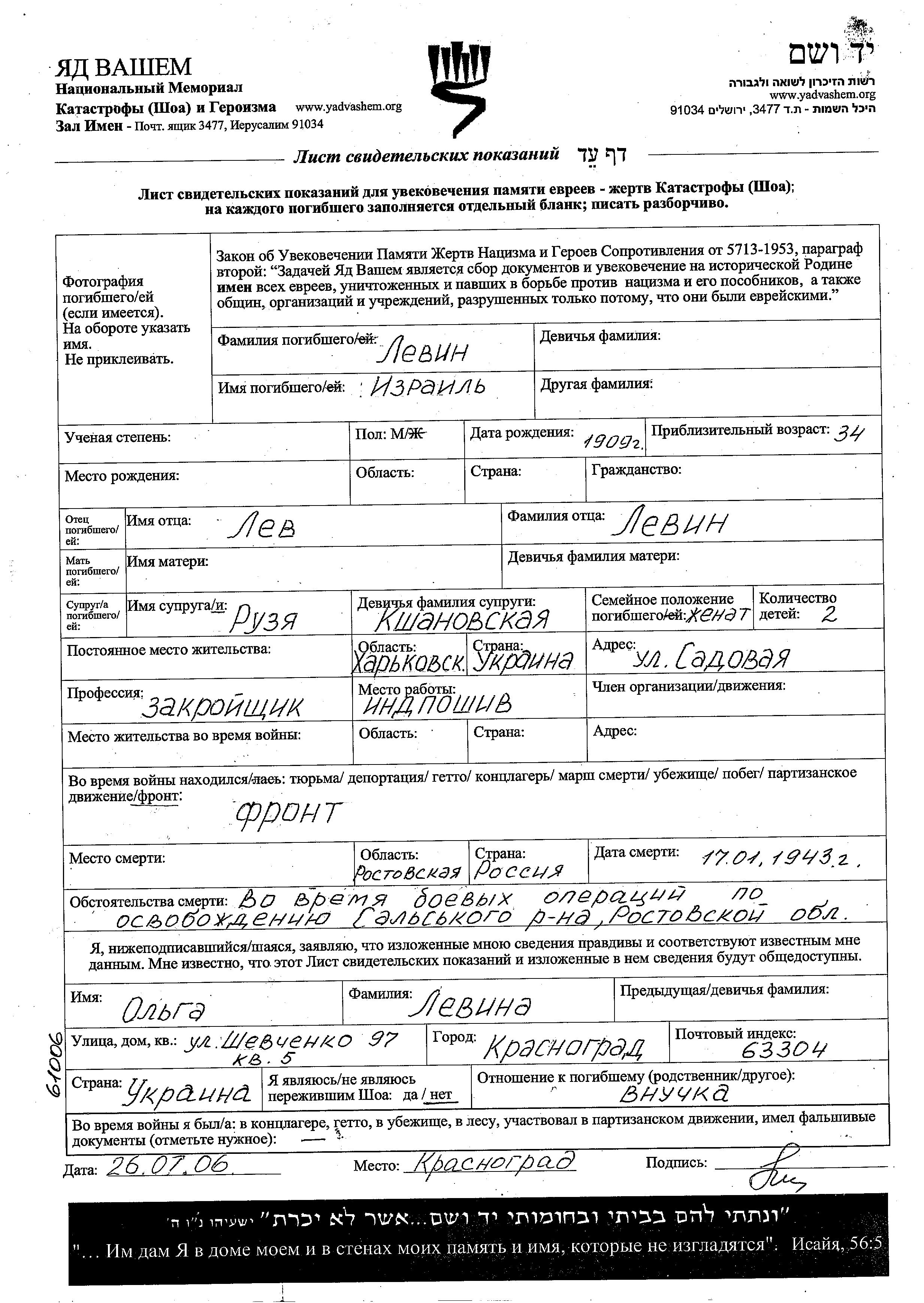 Поиск подателя Листа свидетельских показаний. Поиск по любому имени, включая уменьшительное или прозвище