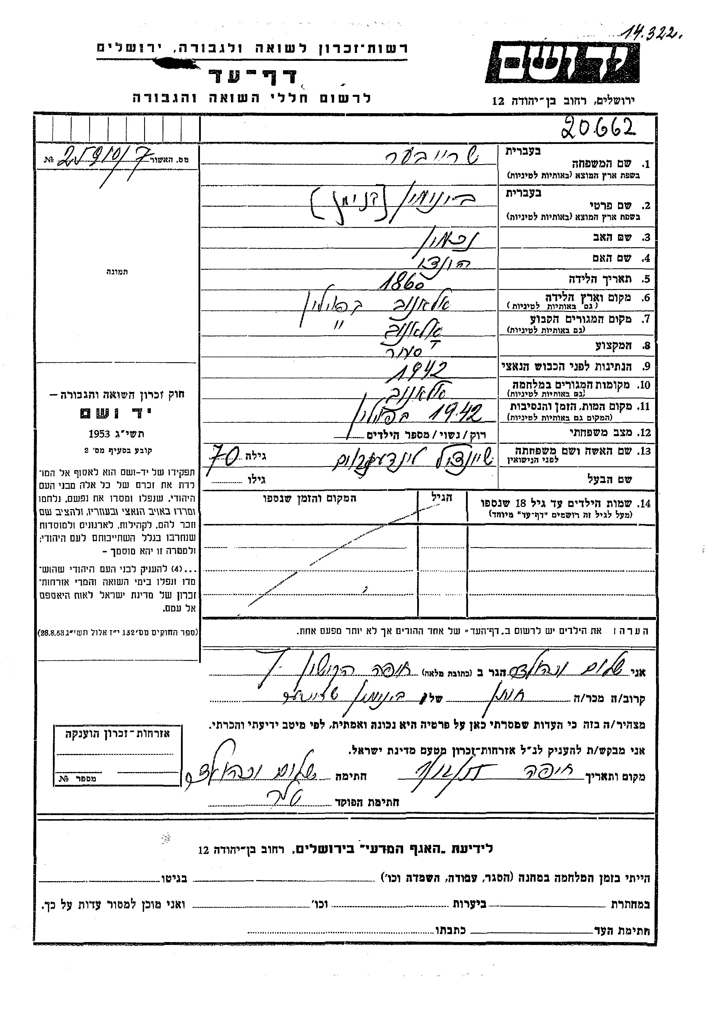 Яд Вашем - Листы свидетельских показаний Мемориального фонда
