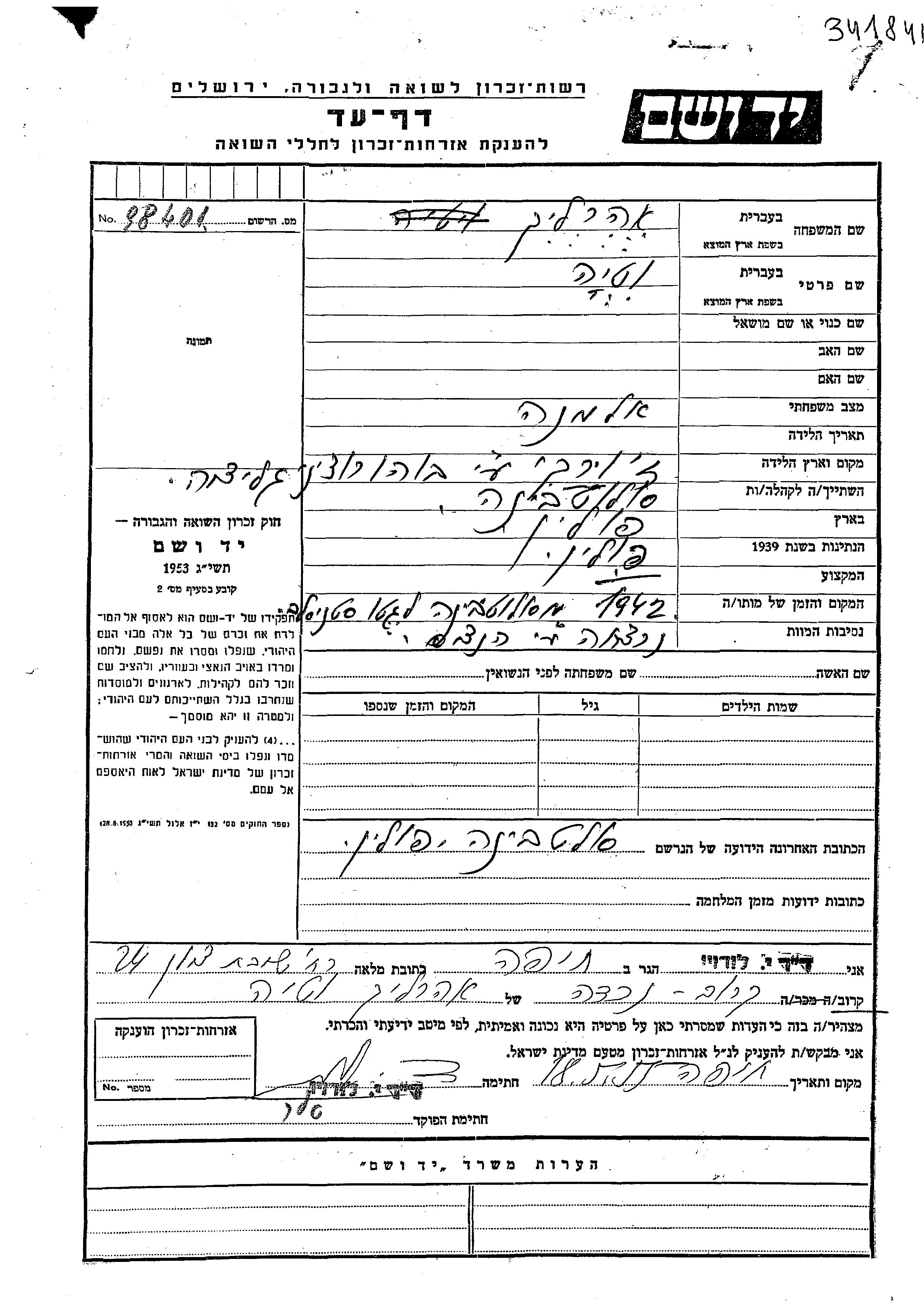 Яд Вашем - Листы свидетельских показаний Мемориального фонда