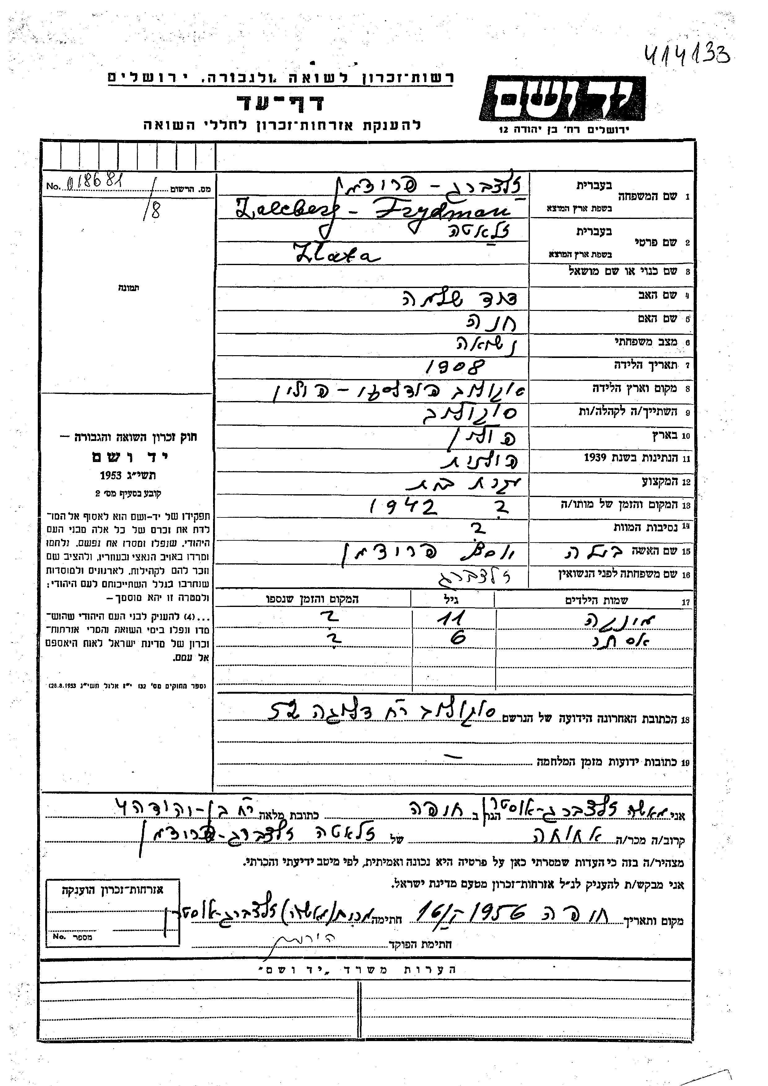 Фридман Злата 1908 Соколув-Подляски, Польша Лист свидетельских показаний