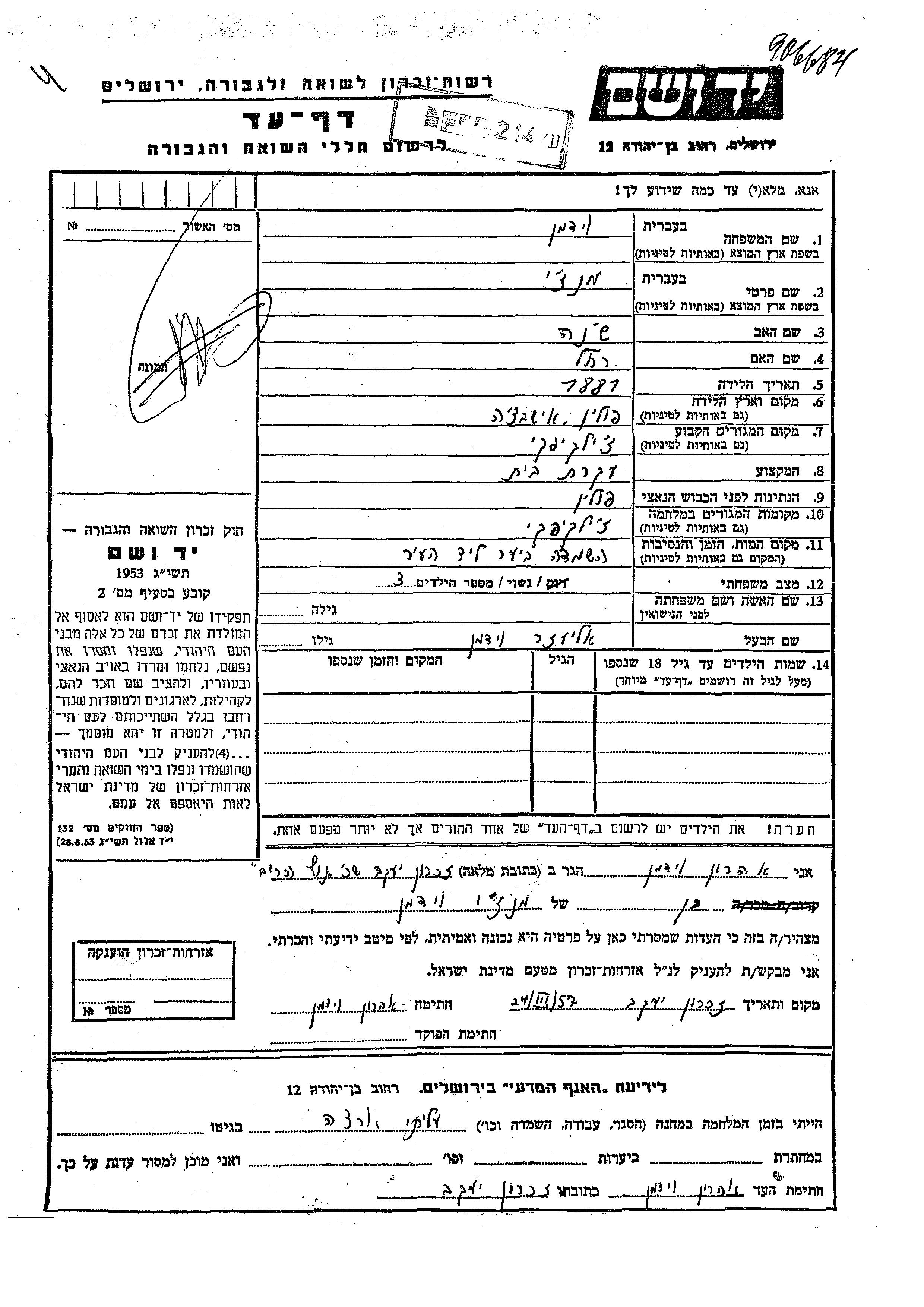 Яд Вашем - Листы свидетельских показаний Мемориального фонда