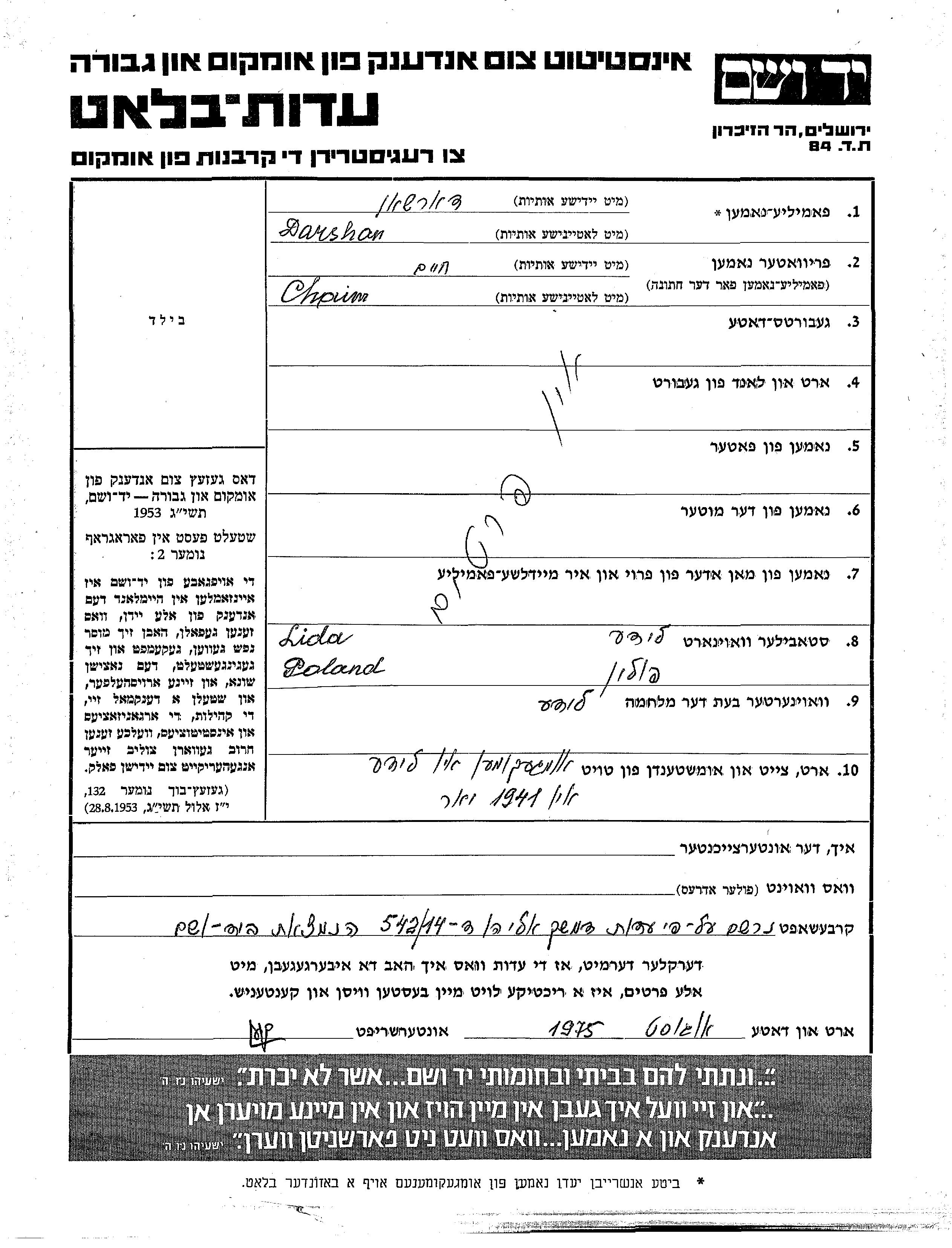 Даршан Хаим Лида, Польша Лист свидетельских показаний