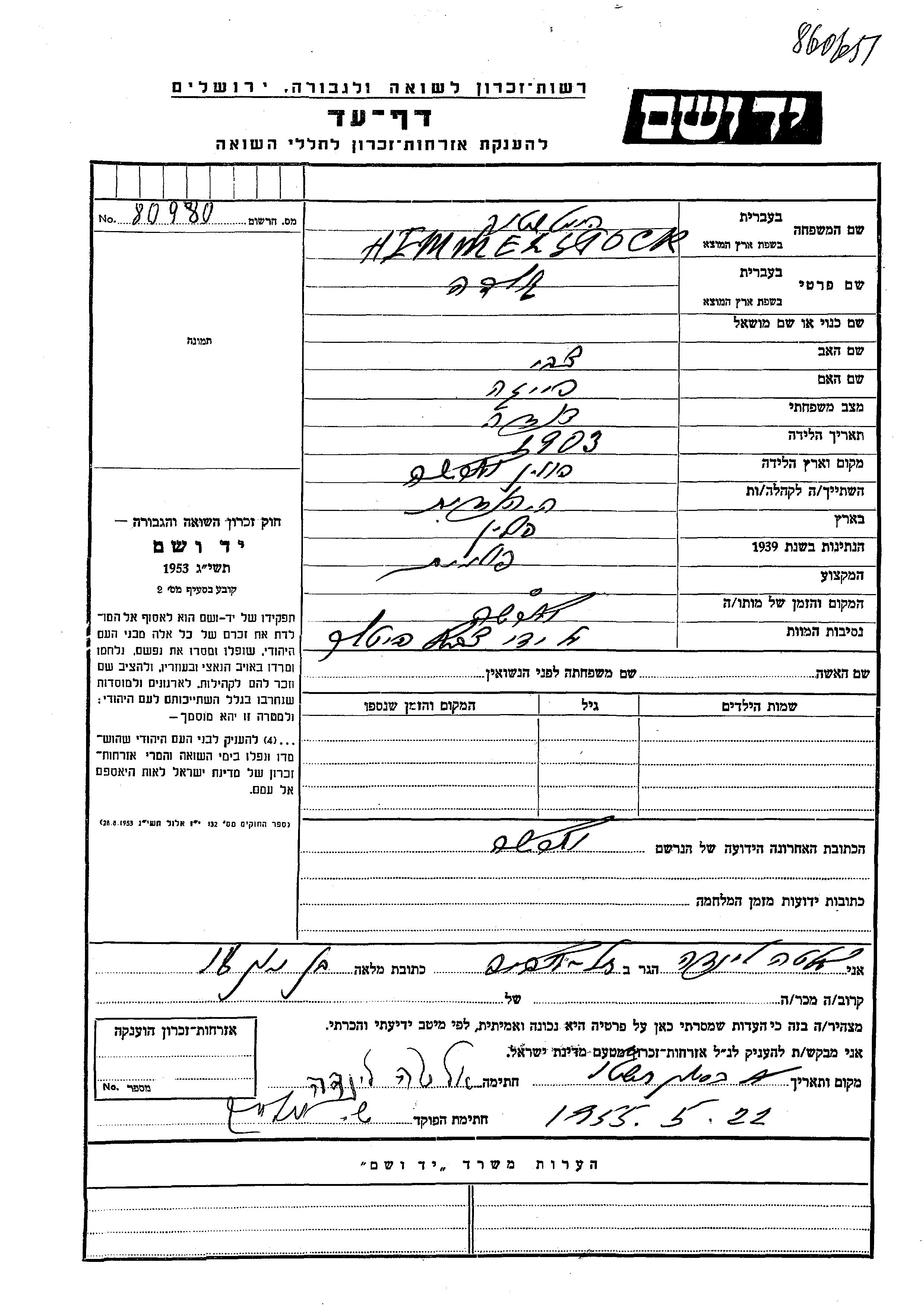 Яд Вашем - Листы свидетельских показаний Мемориального фонда
