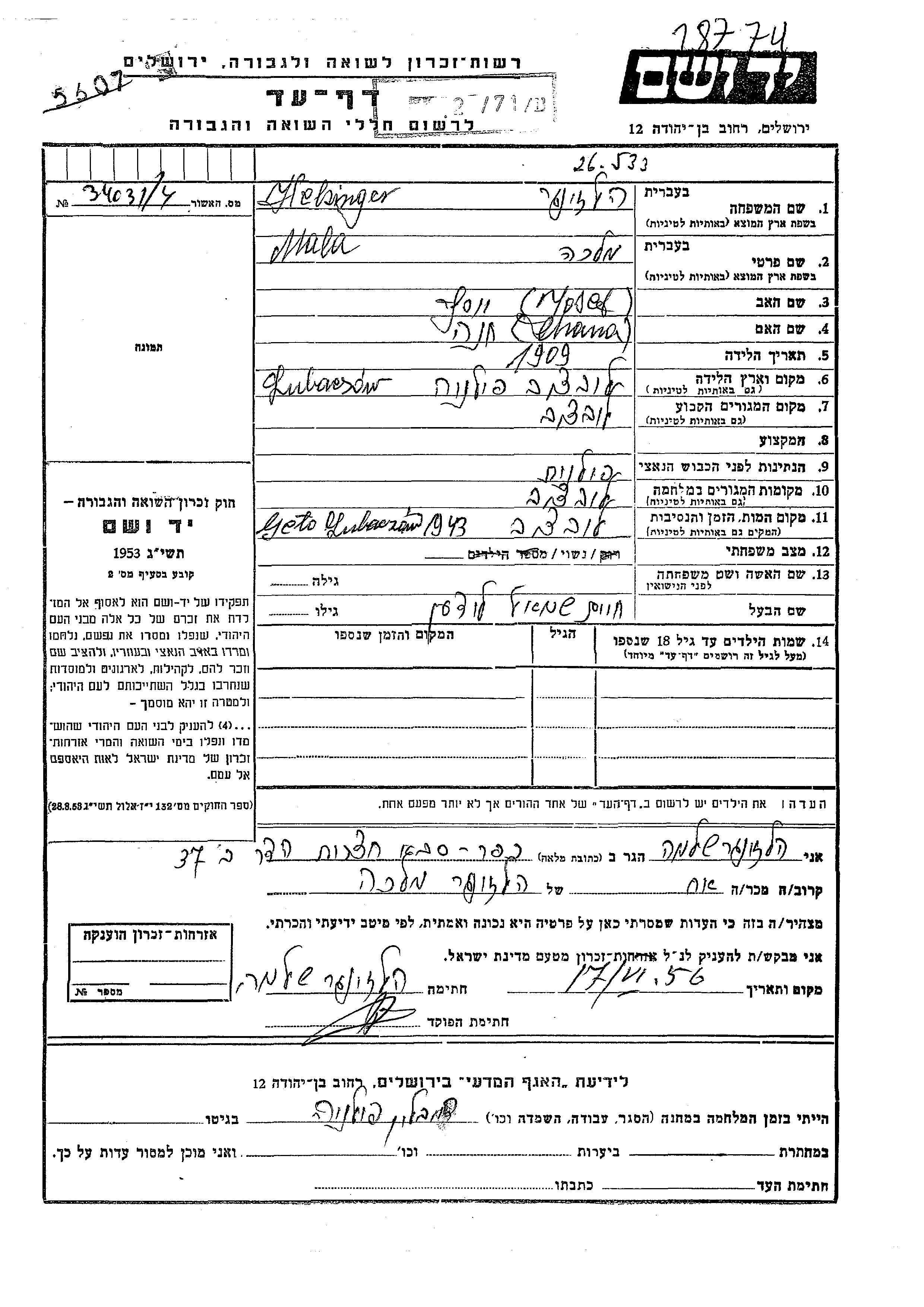 Яд Вашем - Листы свидетельских показаний Мемориального фонда