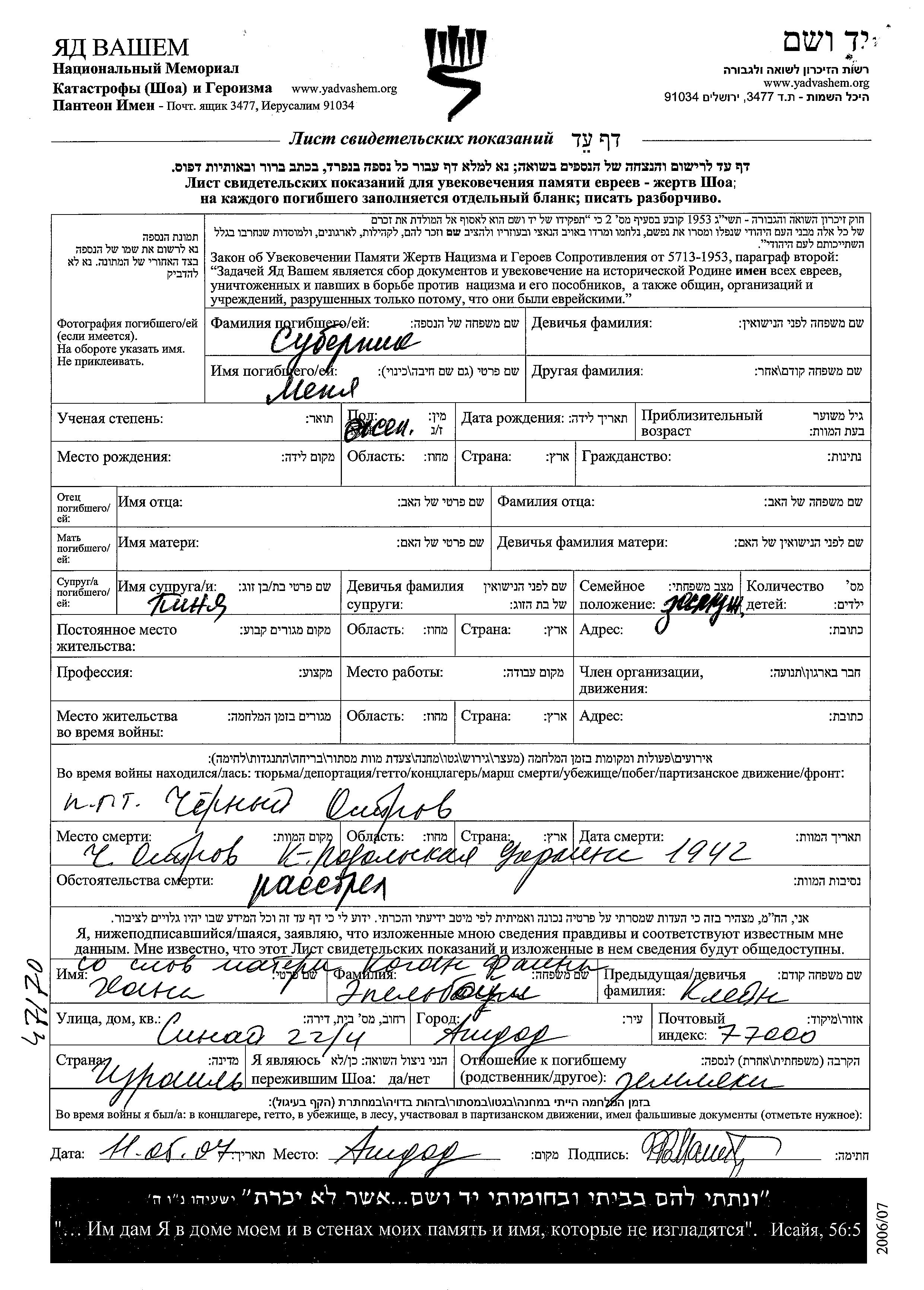Поиск подателя Листа свидетельских показаний. Поиск по любому имени, включая уменьшительное или прозвище