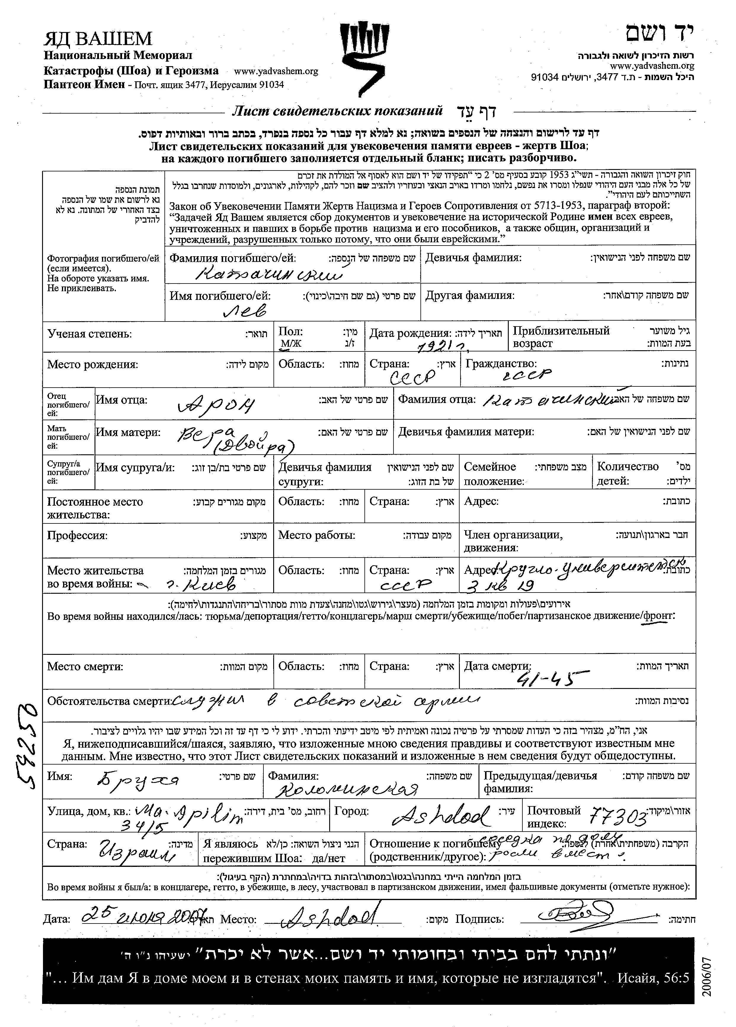 Поиск подателя Листа свидетельских показаний. Поиск по любому имени, включая уменьшительное или прозвище