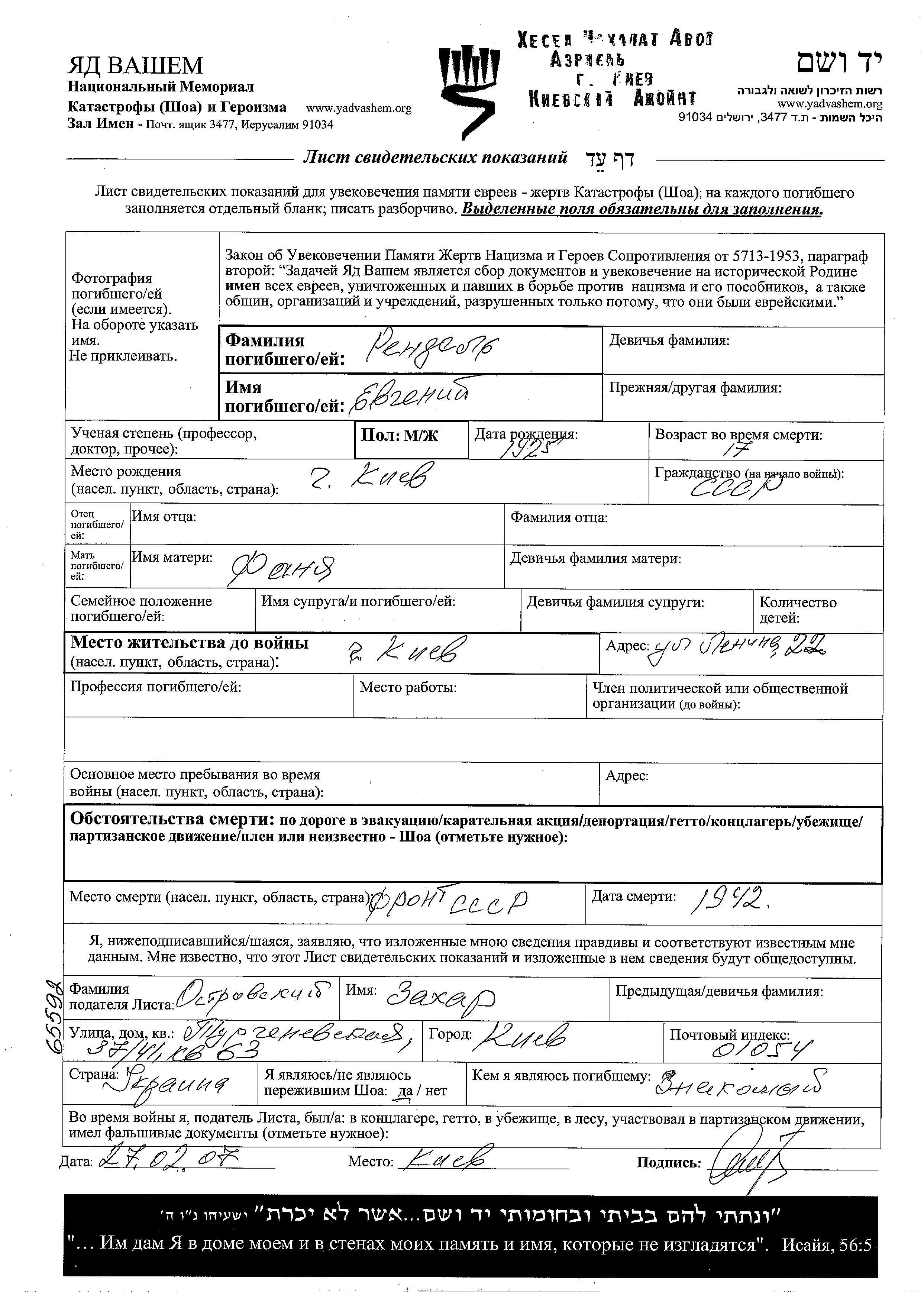 Поиск подателя Листа свидетельских показаний. Поиск по любому имени, включая уменьшительное или прозвище