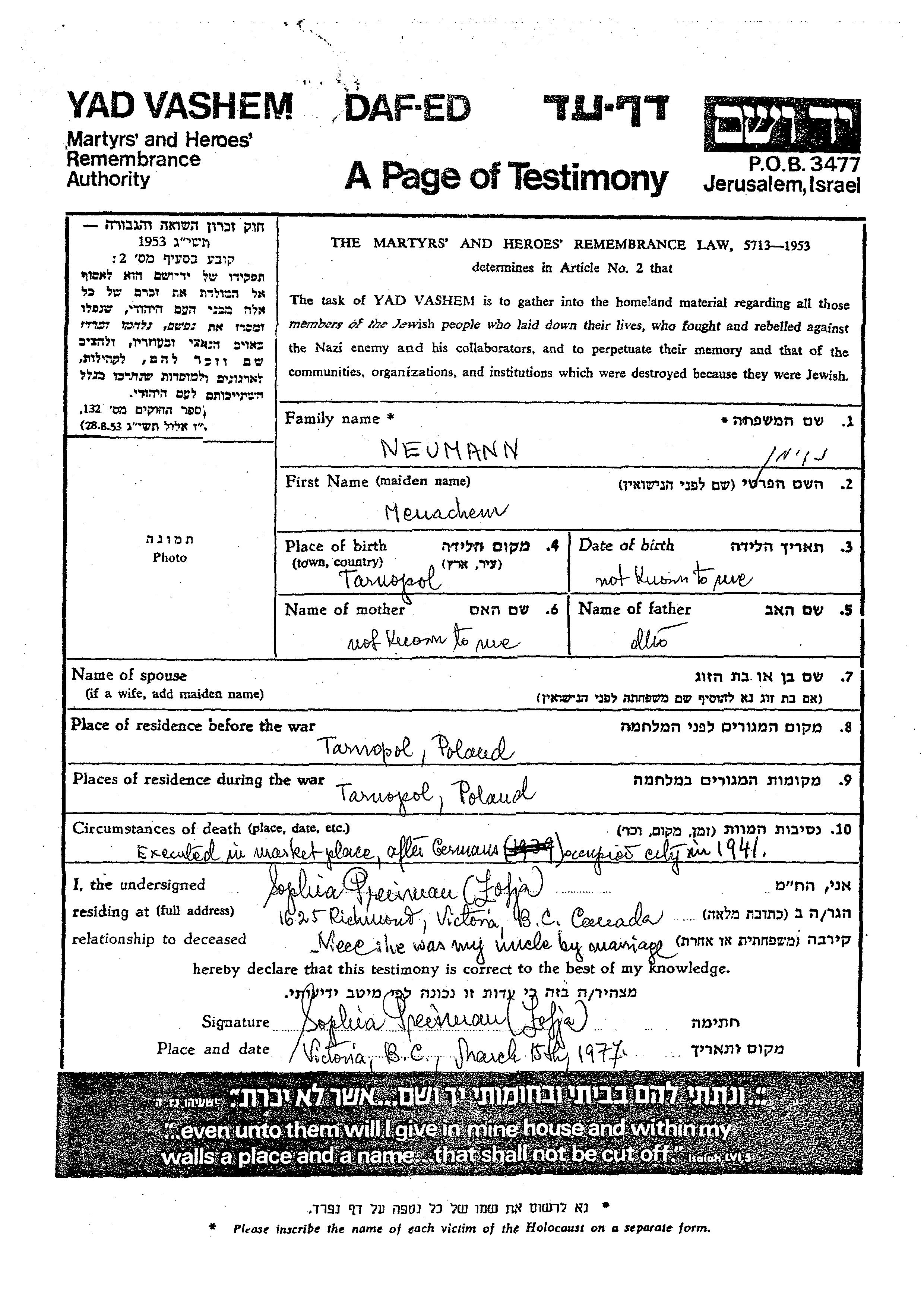 Во время войны/Шоа: