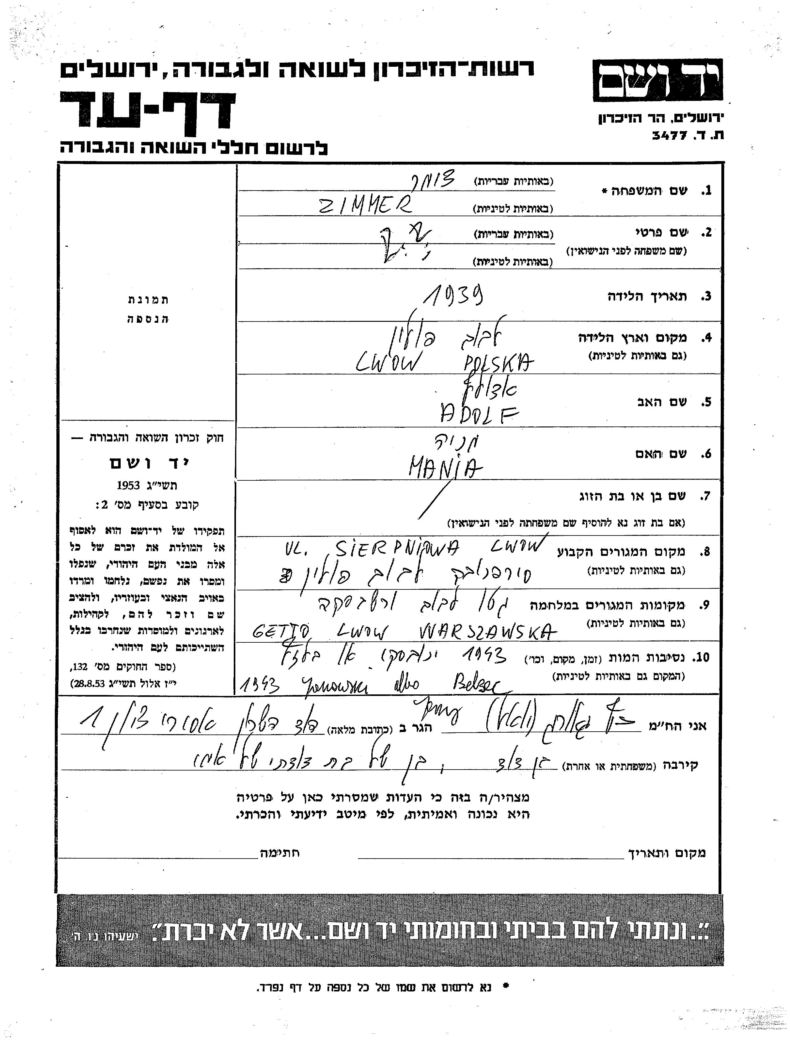 Яд Вашем - Листы свидетельских показаний Мемориального фонда