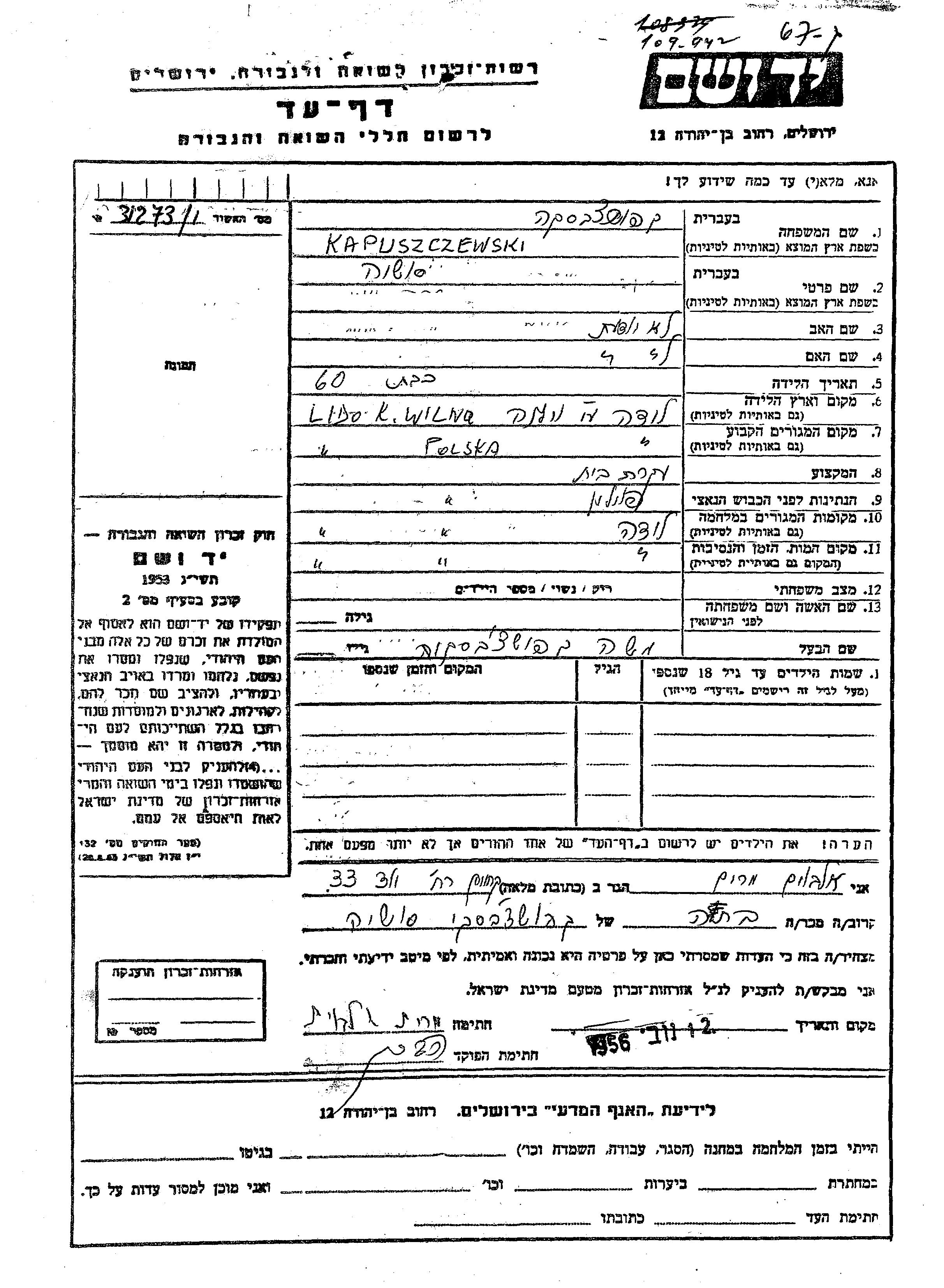 Яд Вашем - Листы свидетельских показаний Мемориального фонда