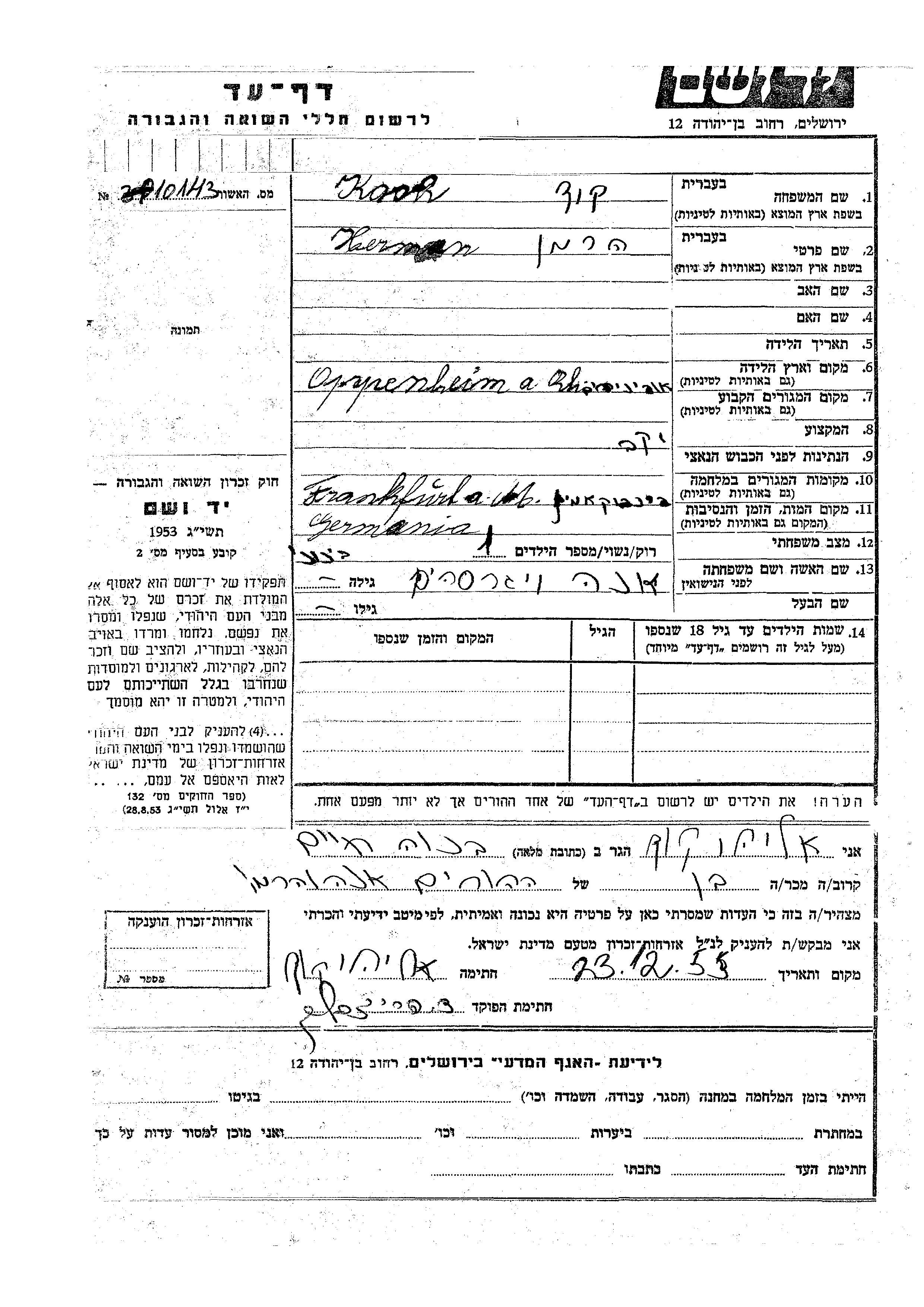 Херман Кох, место рождения: Оппенгейм, Германия. Работник виноградника. Место во время войны: Франкфурт-на-Майне, Германия.