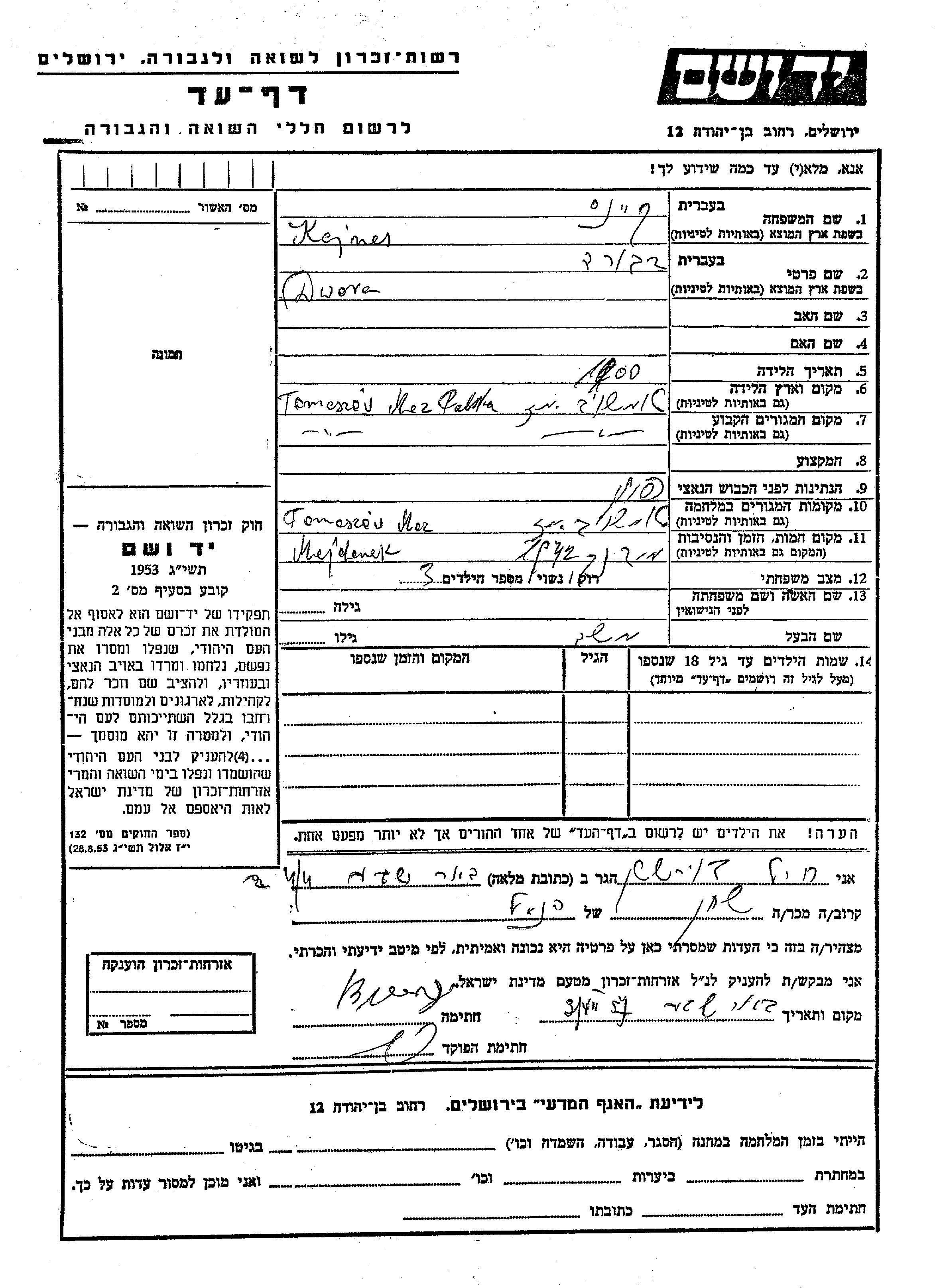Яд Вашем - Листы свидетельских показаний Мемориального фонда