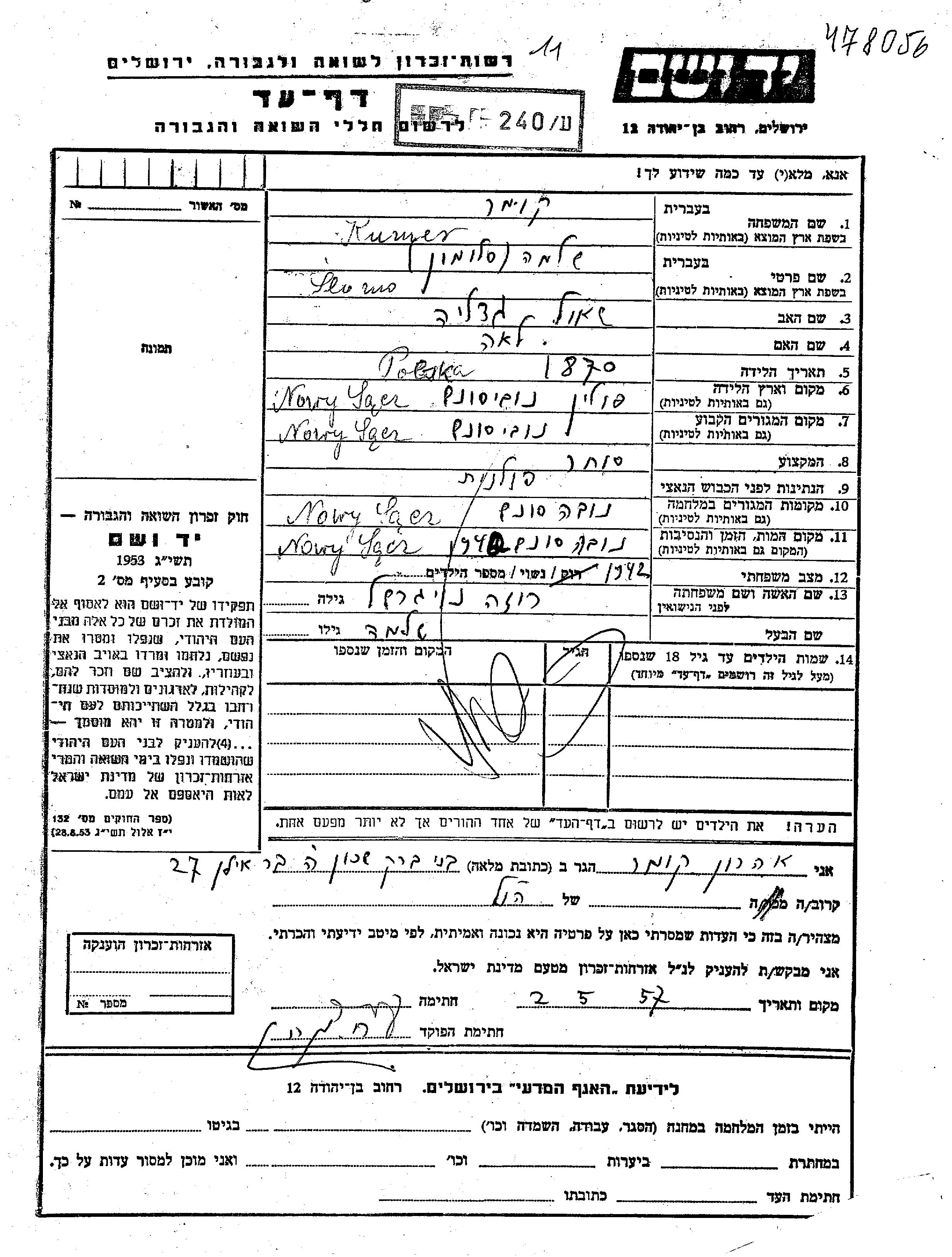 Яд Вашем - Листы свидетельских показаний Мемориального фонда