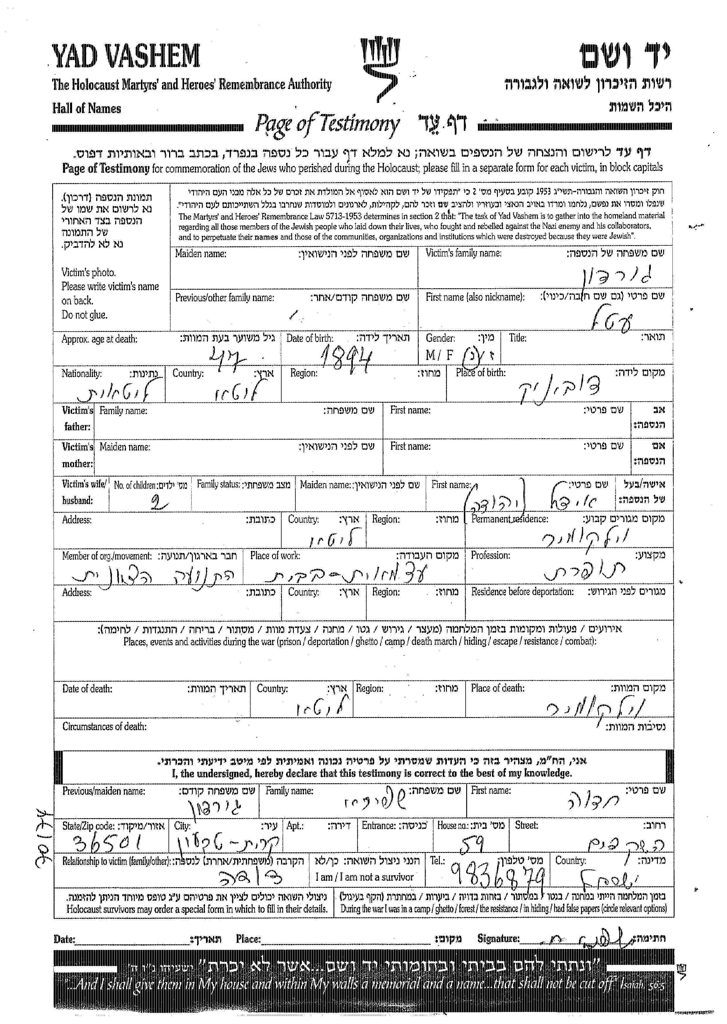 Яд Вашем - Листы свидетельских показаний Мемориального фонда