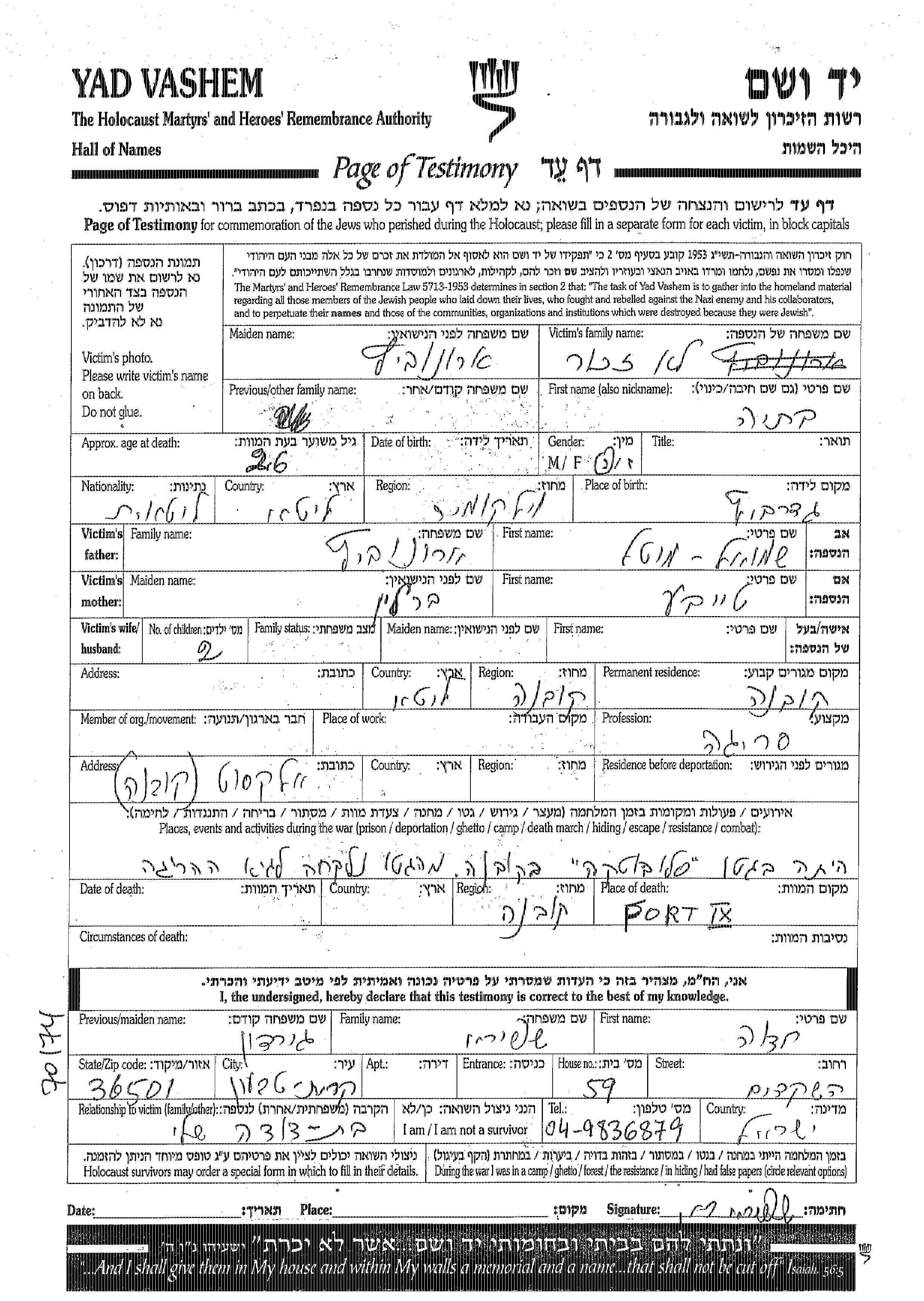 Яд Вашем - Листы свидетельских показаний Мемориального фонда