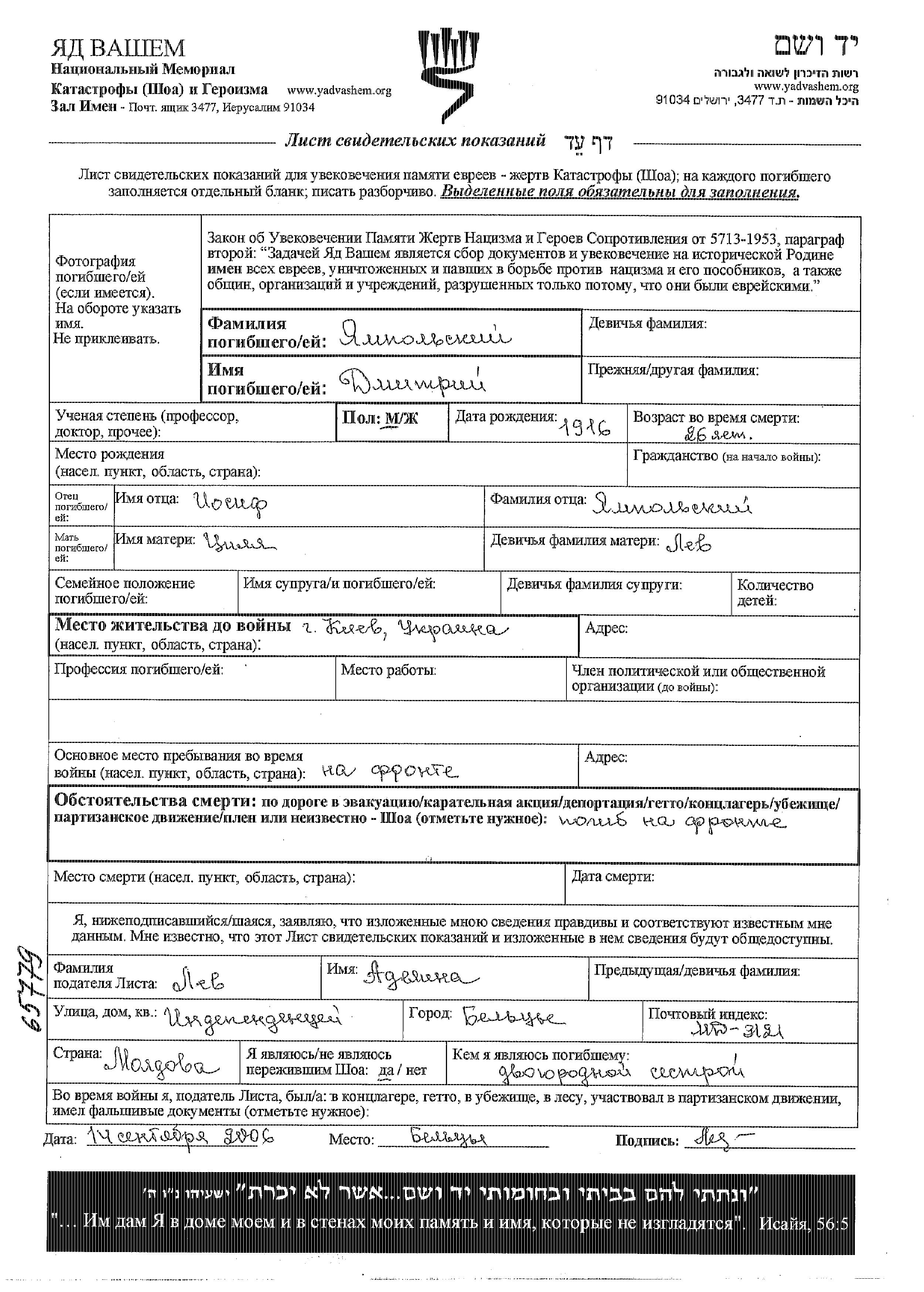 Поиск подателя Листа свидетельских показаний. Поиск по любому имени, включая уменьшительное или прозвище