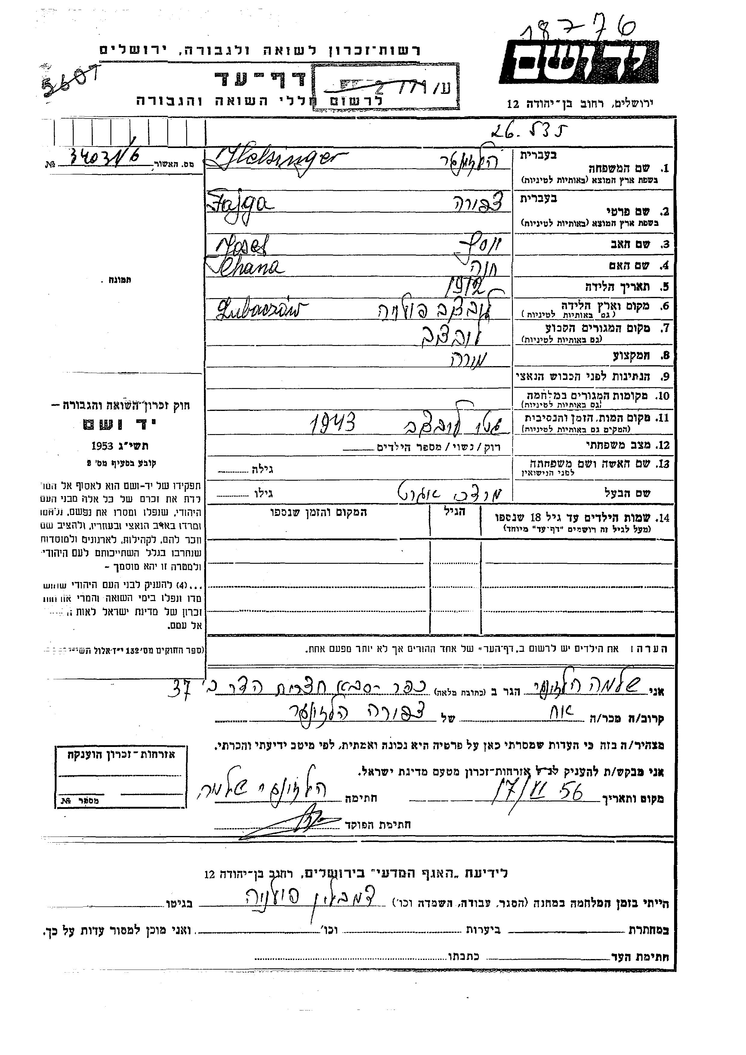 Яд Вашем - Листы свидетельских показаний Мемориального фонда