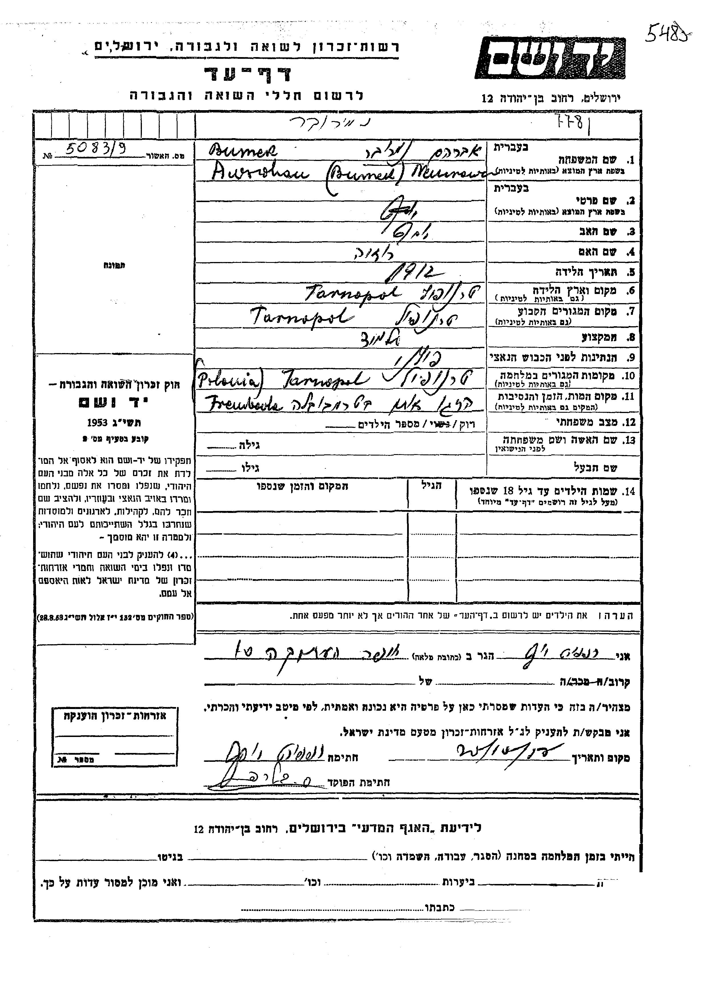 Яд Вашем - Листы свидетельских показаний Мемориального фонда