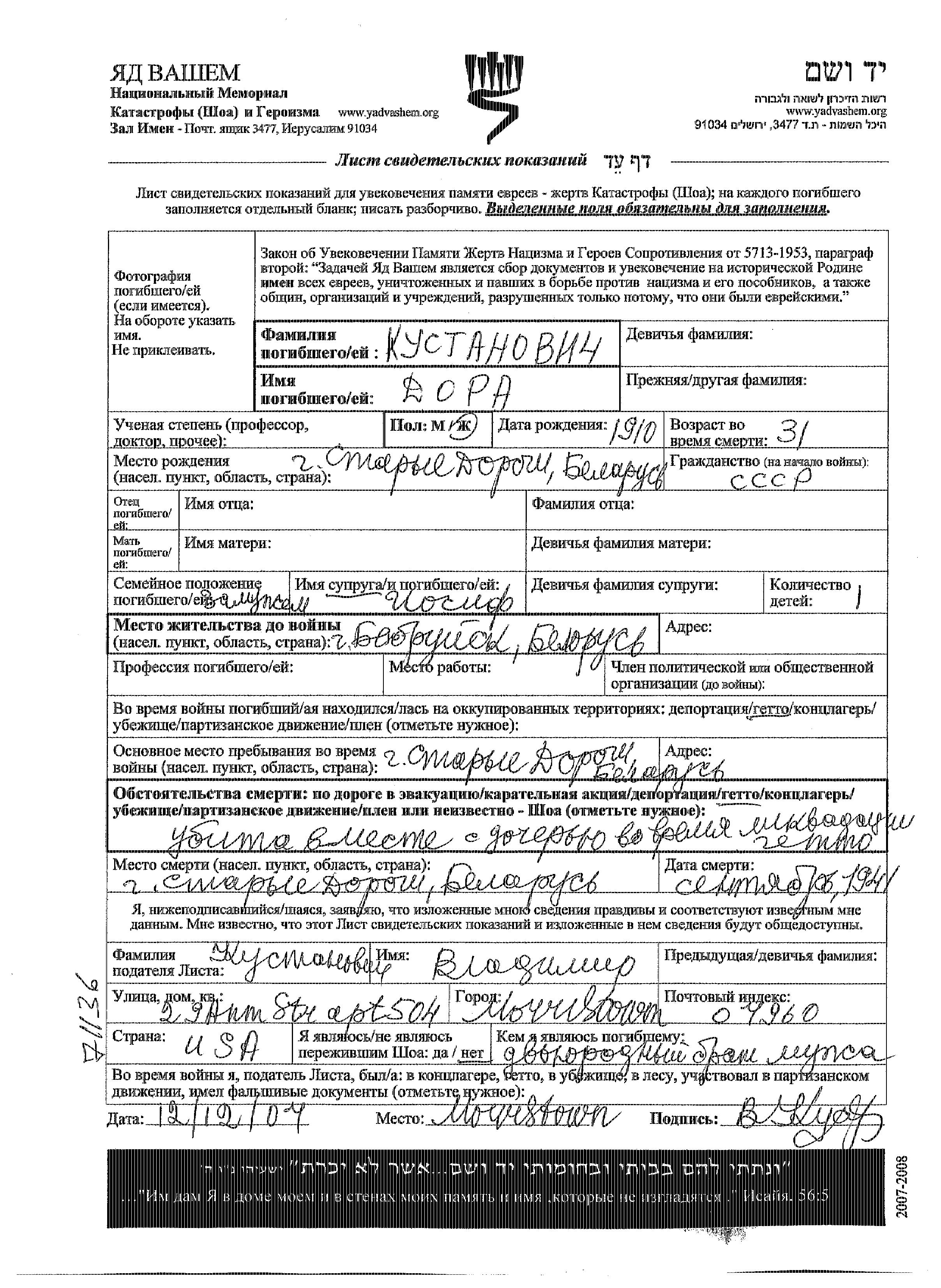 Поиск подателя Листа свидетельских показаний. Поиск по любому имени, включая уменьшительное или прозвище
