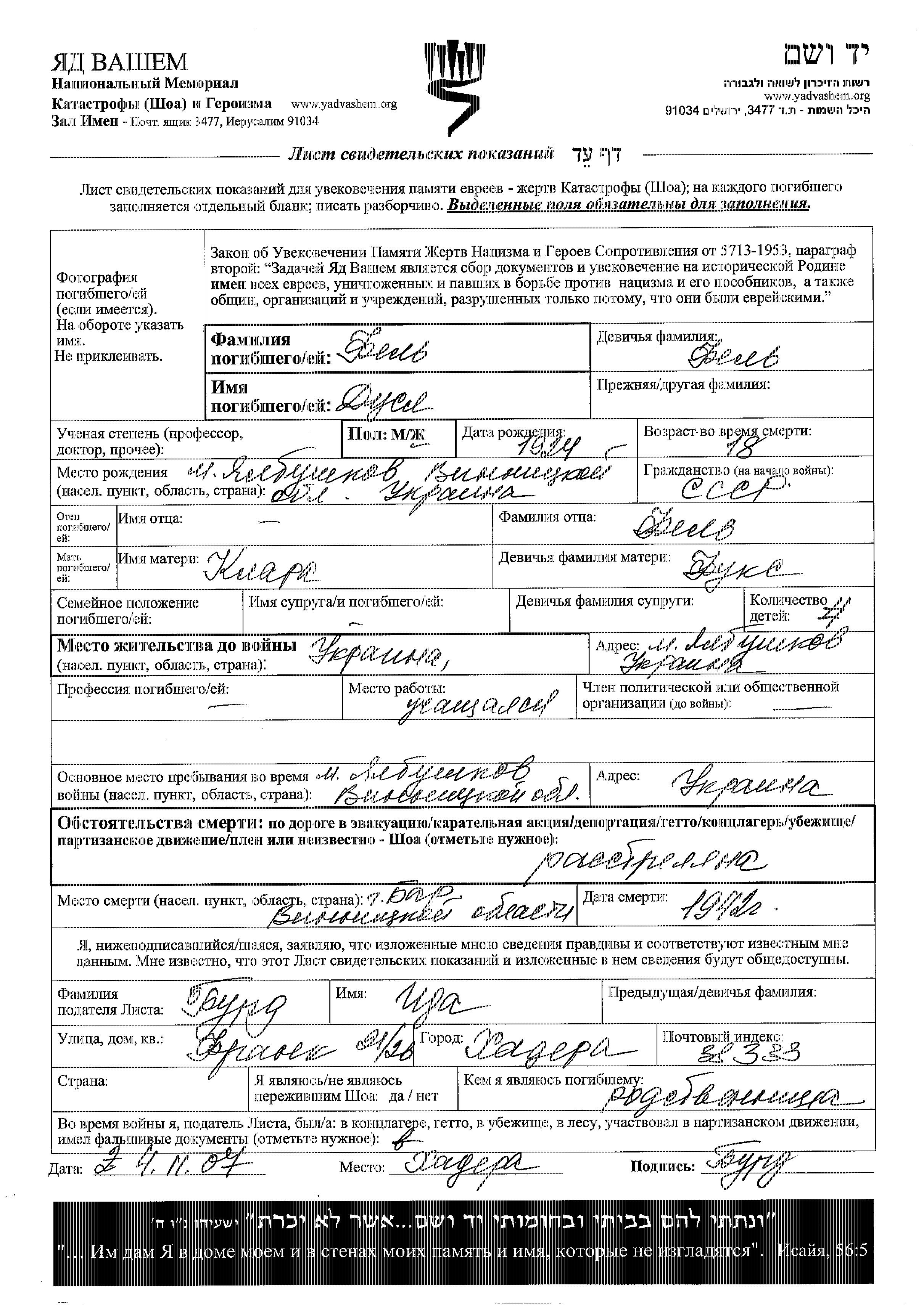 Поиск подателя Листа свидетельских показаний. Поиск по любому имени, включая уменьшительное или прозвище