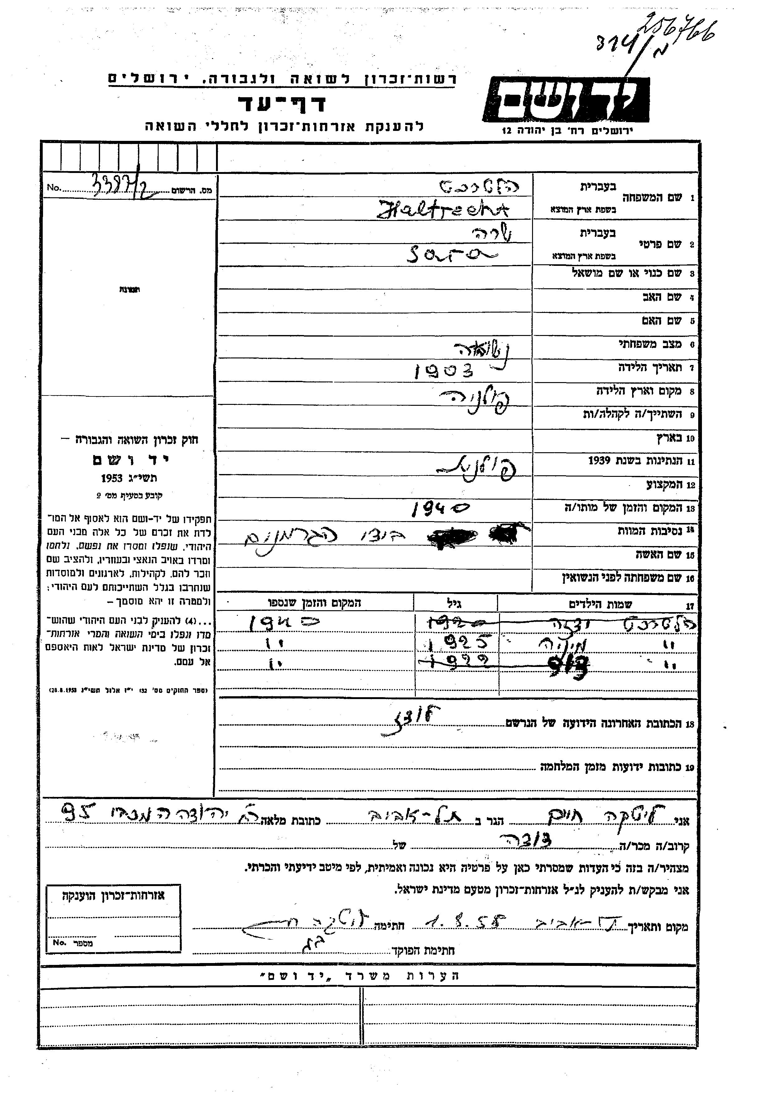 Хальтрехт Сара 1903 место не указано, Лист свидетельских показаний