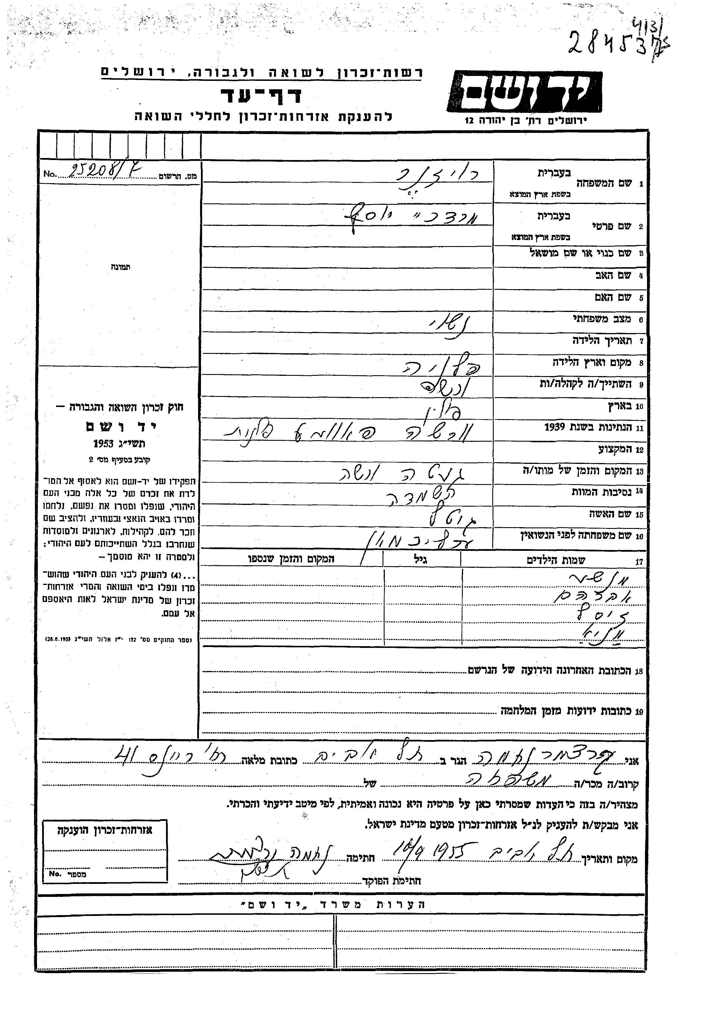 Яд Вашем - Листы свидетельских показаний Мемориального фонда