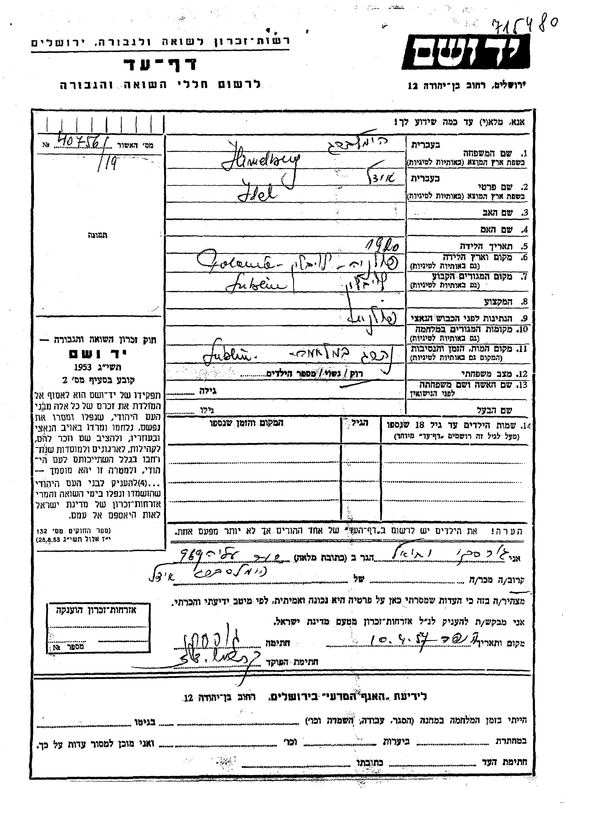 Яд Вашем - Листы свидетельских показаний Мемориального фонда