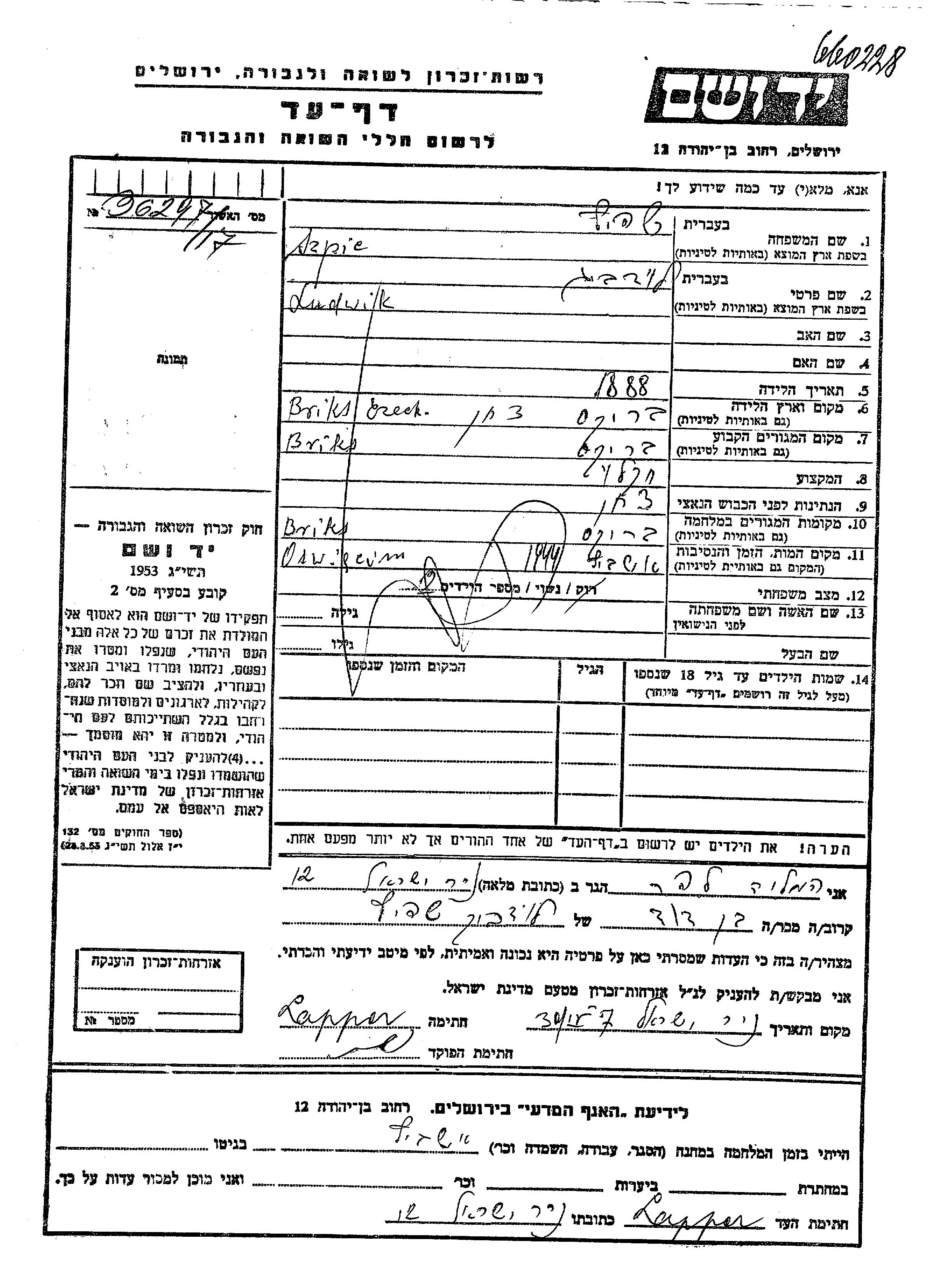 Яд Вашем - Листы свидетельских показаний Мемориального фонда