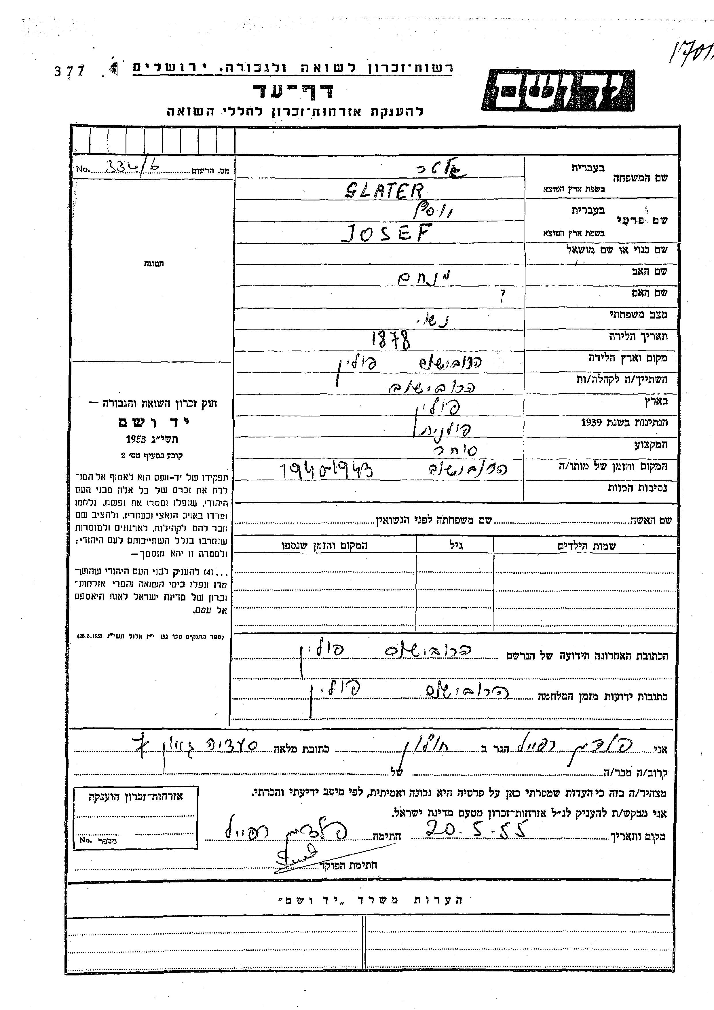 Яд Вашем - Листы свидетельских показаний Мемориального фонда