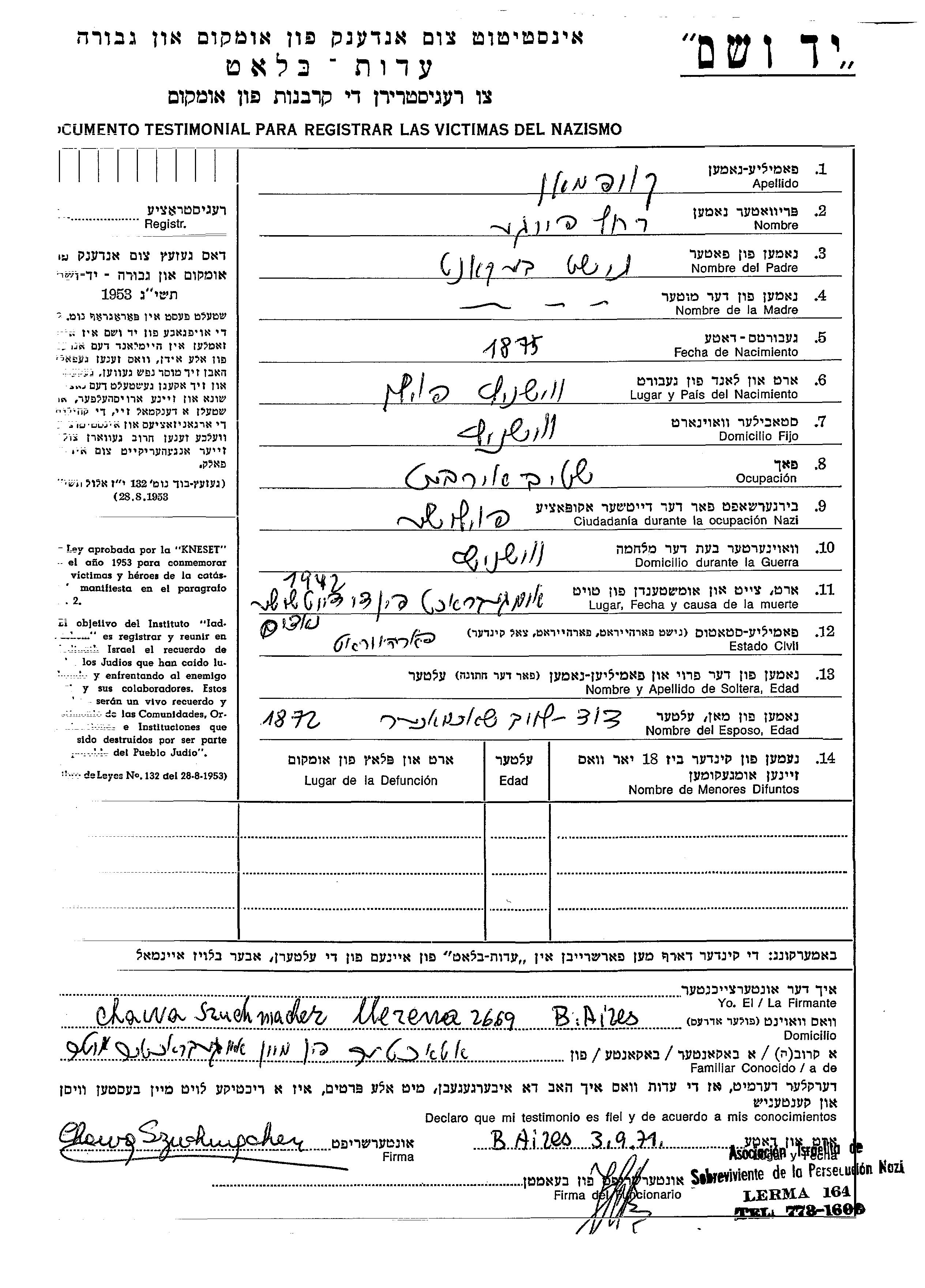 Яд Вашем - Листы свидетельских показаний Мемориального фонда