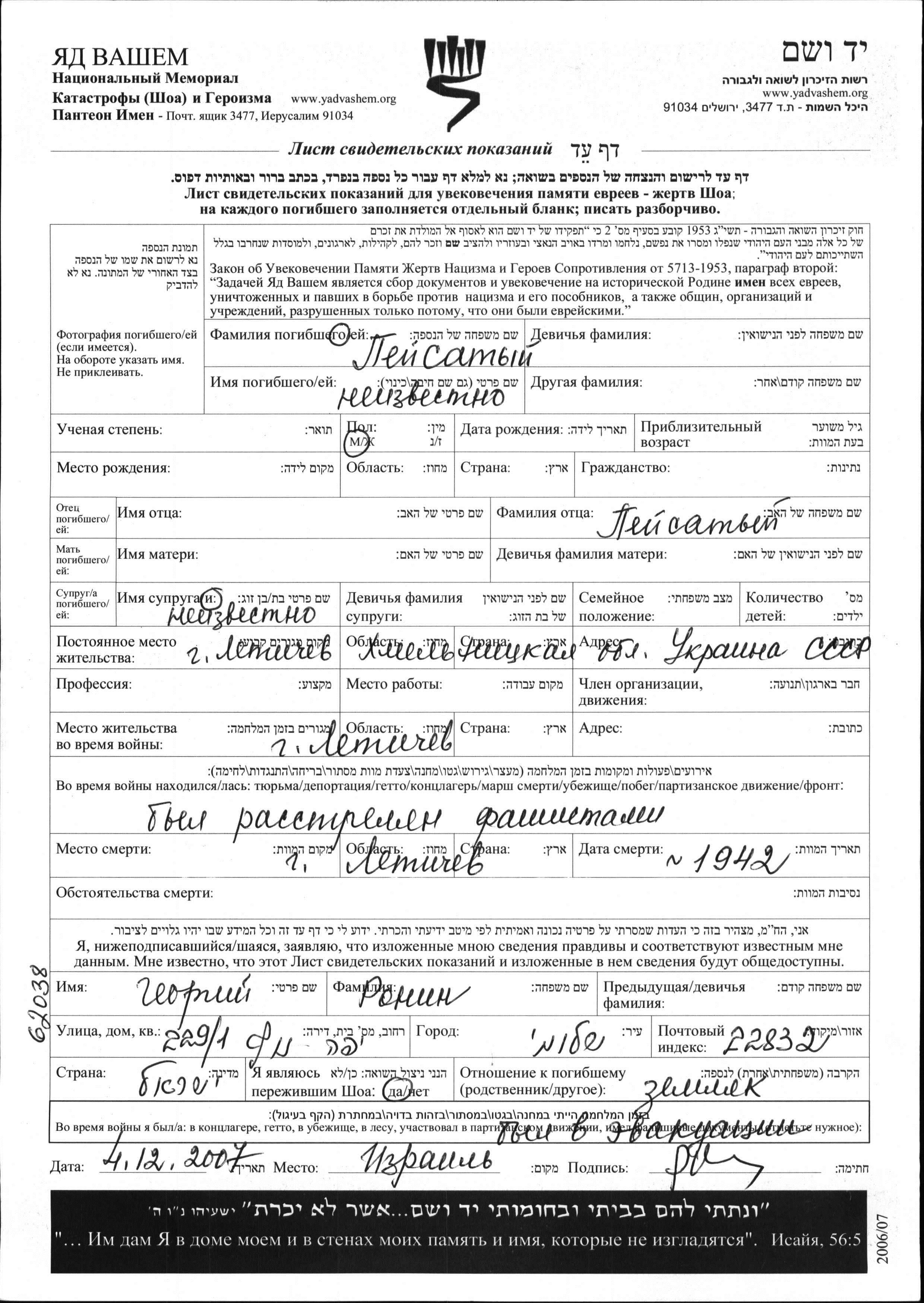 Во время Шоа евреев уничтожали разными способами: газовые камеры, расстрелы, их заживо хоронили или сжигали, непосильным принудительным трудом, голодом, эпидемиями, отсутствием минимальных гигиенических условий и медицинского обслуживания, и т.д. Некоторые евреи добровольно расстались со своей жизнью, чтобы избежать ареста и дальнейших преследований или чтобы покончить с безысходностью и бесконечными страданиями.