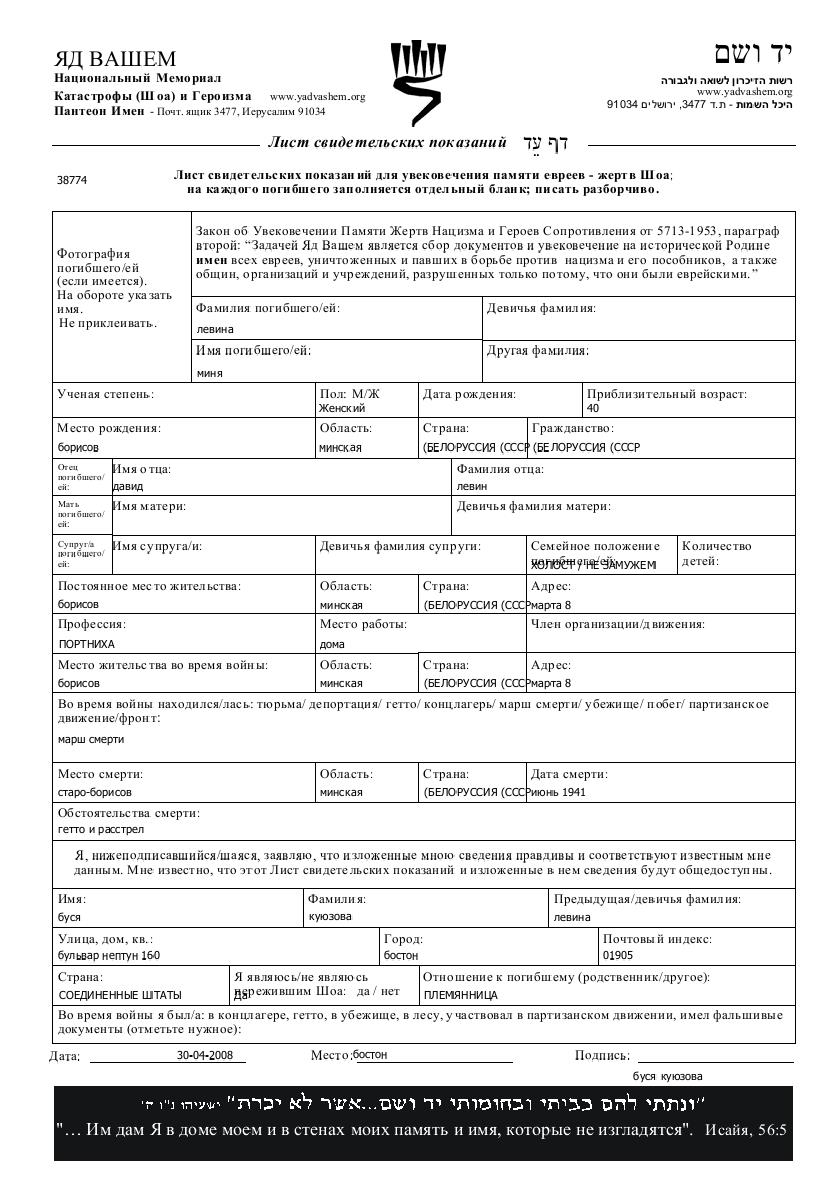 Поиск подателя Листа свидетельских показаний. Поиск по любому имени, включая уменьшительное или прозвище