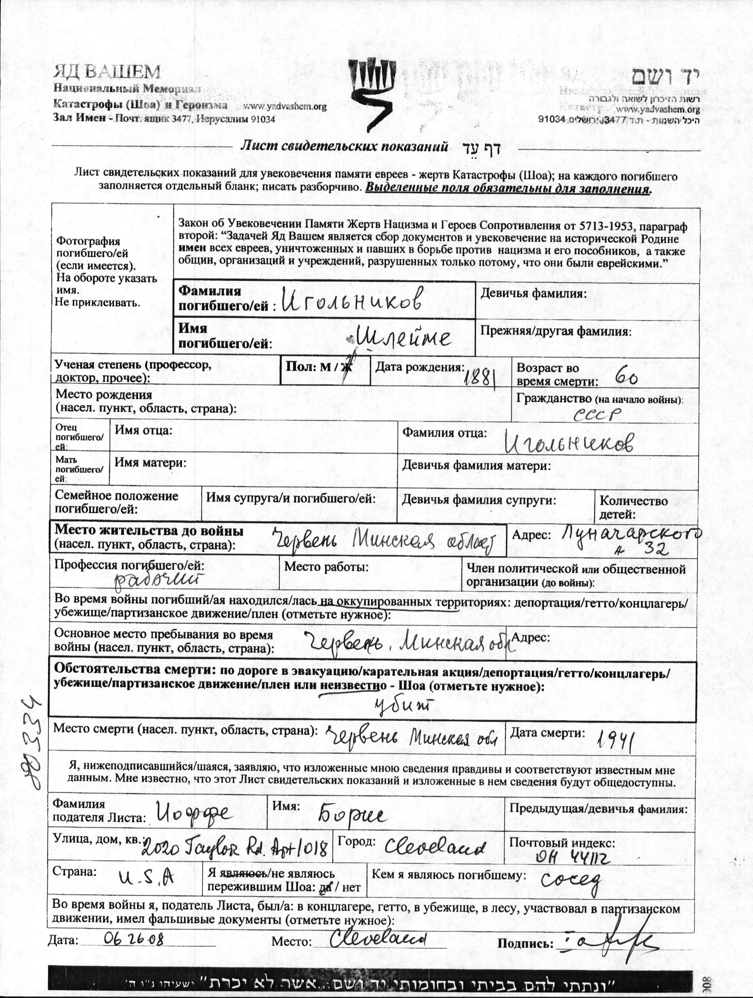 Поиск подателя Листа свидетельских показаний. Поиск по любому имени, включая уменьшительное или прозвище