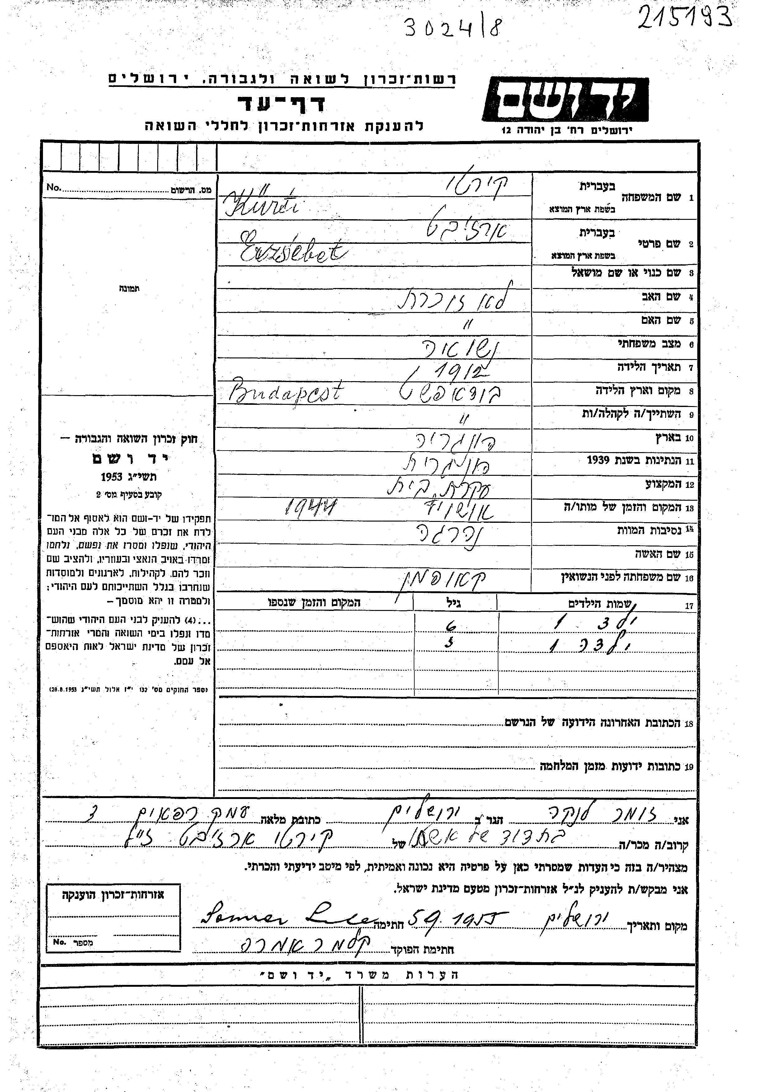 Яд Вашем - Листы свидетельских показаний Мемориального фонда