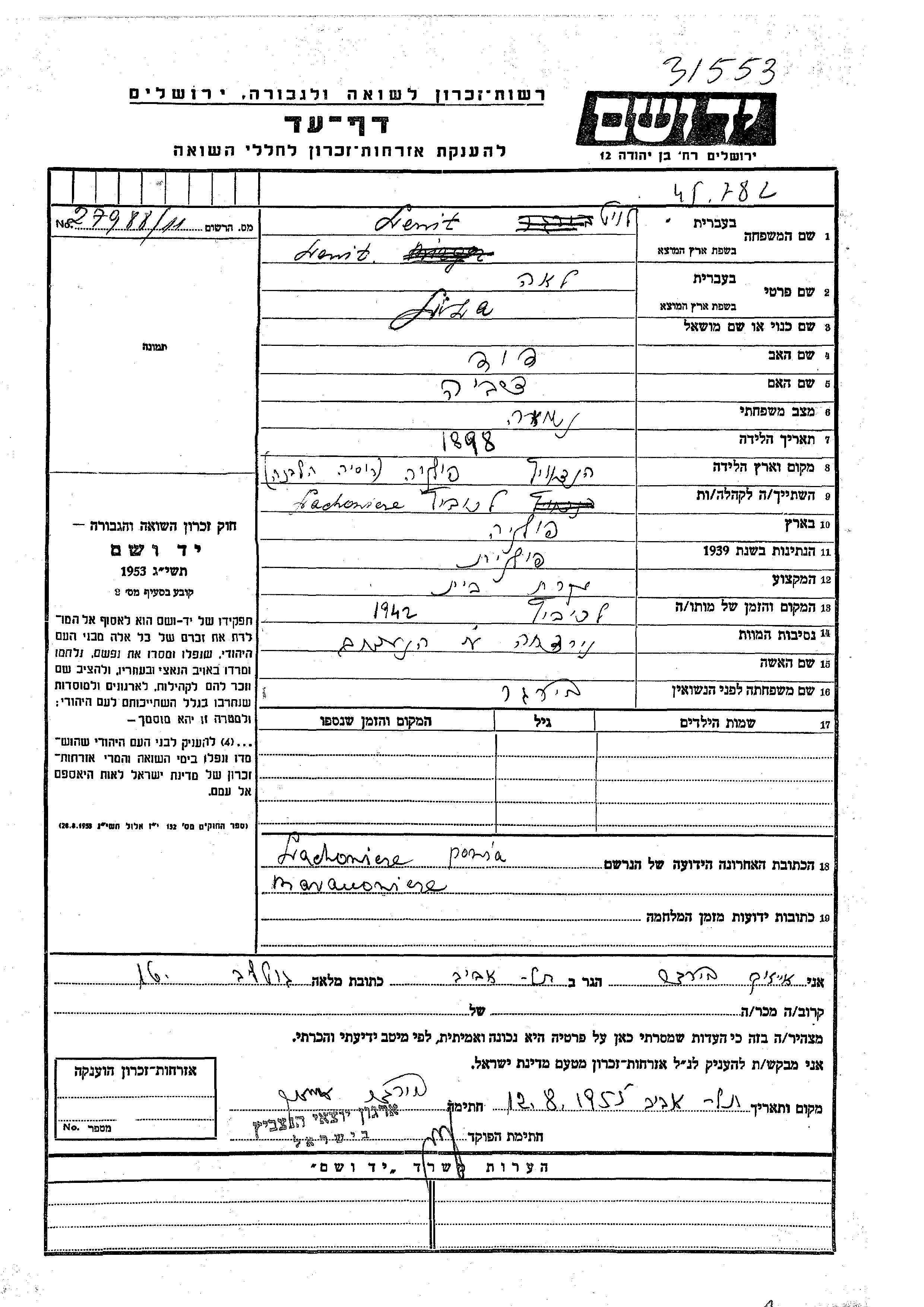 Яд Вашем - Листы свидетельских показаний Мемориального фонда