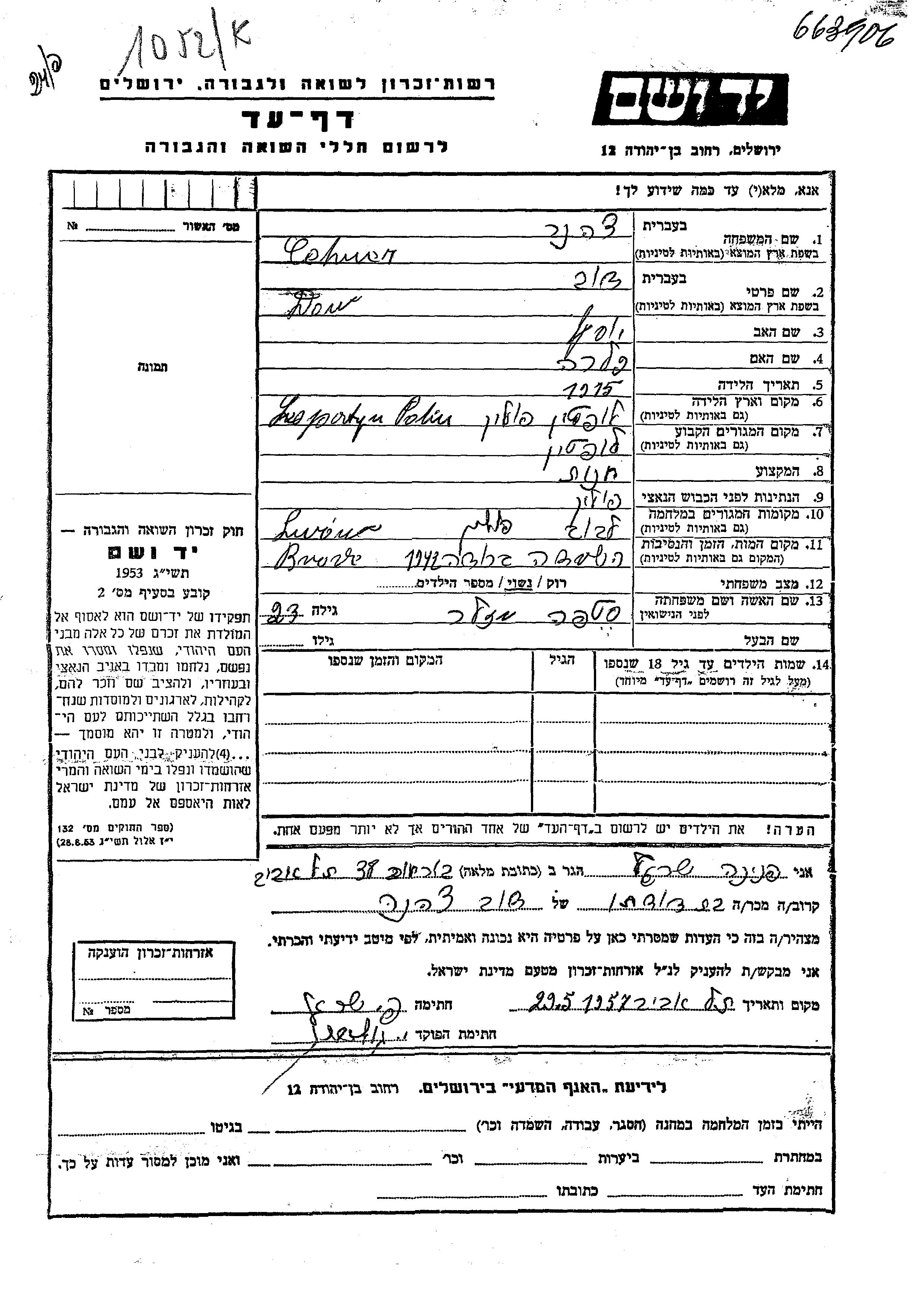 Яд Вашем - Листы свидетельских показаний Мемориального фонда