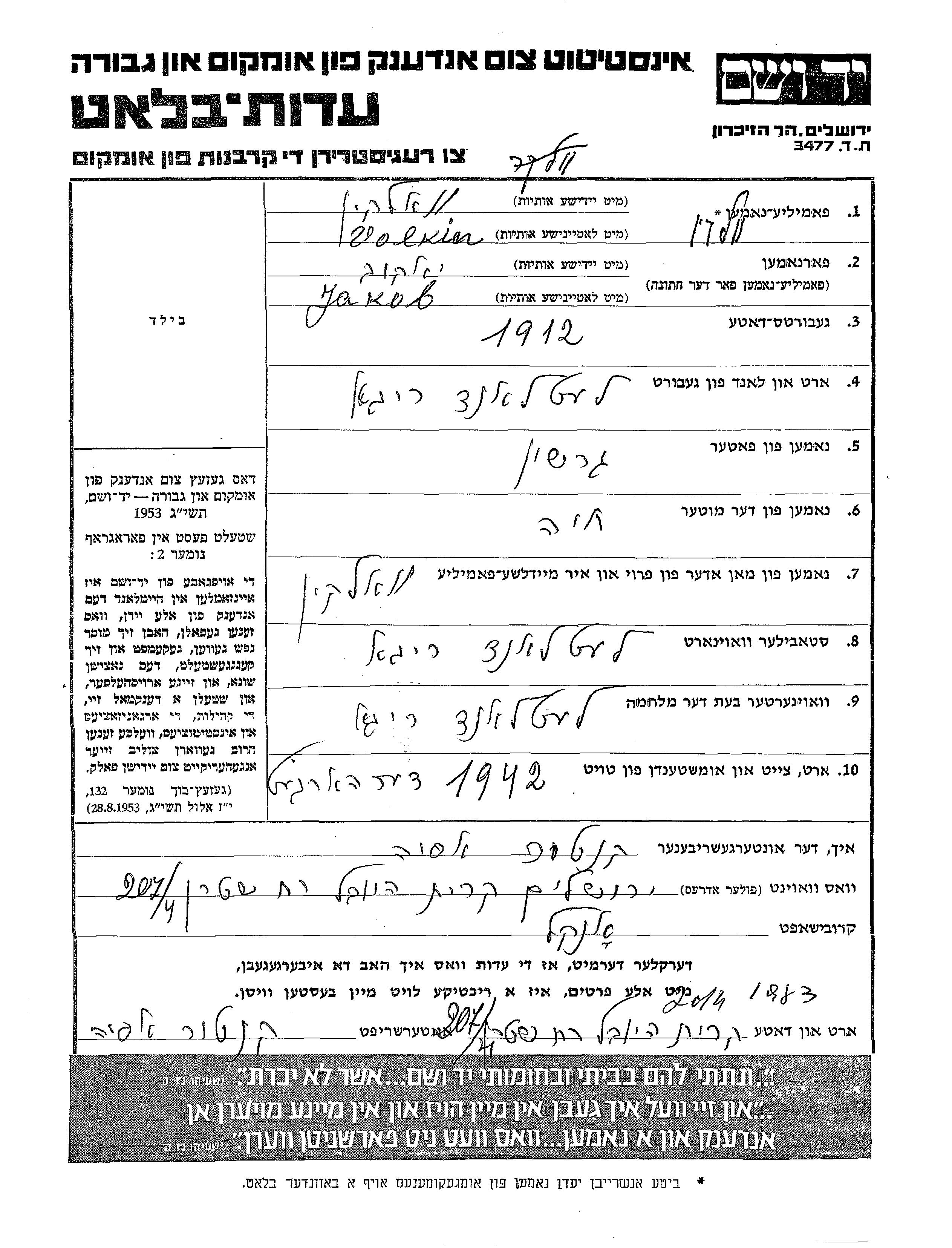Волкин Валкин Якоб 1912 Рига, Латвия Лист свидетельских показаний