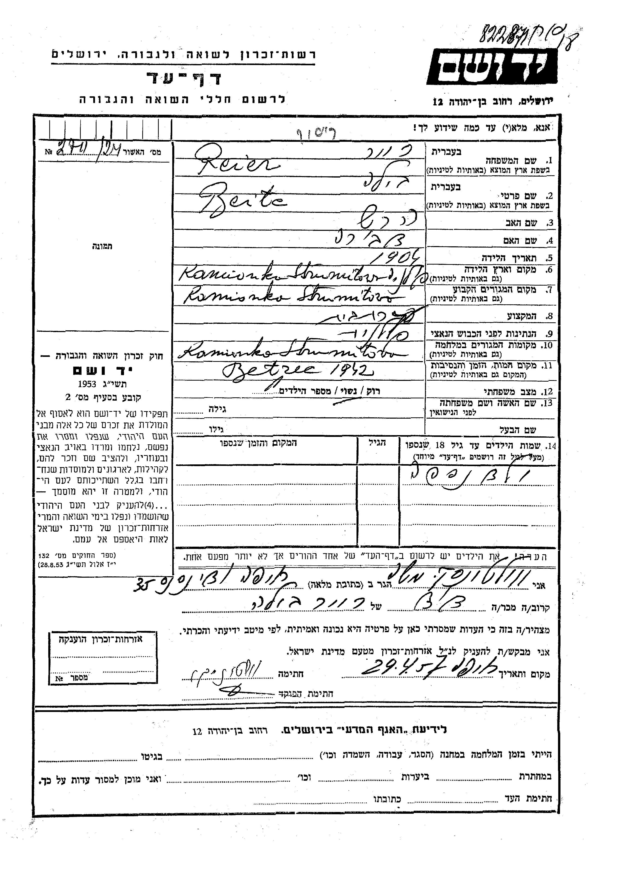 Яд Вашем - Листы свидетельских показаний Мемориального фонда