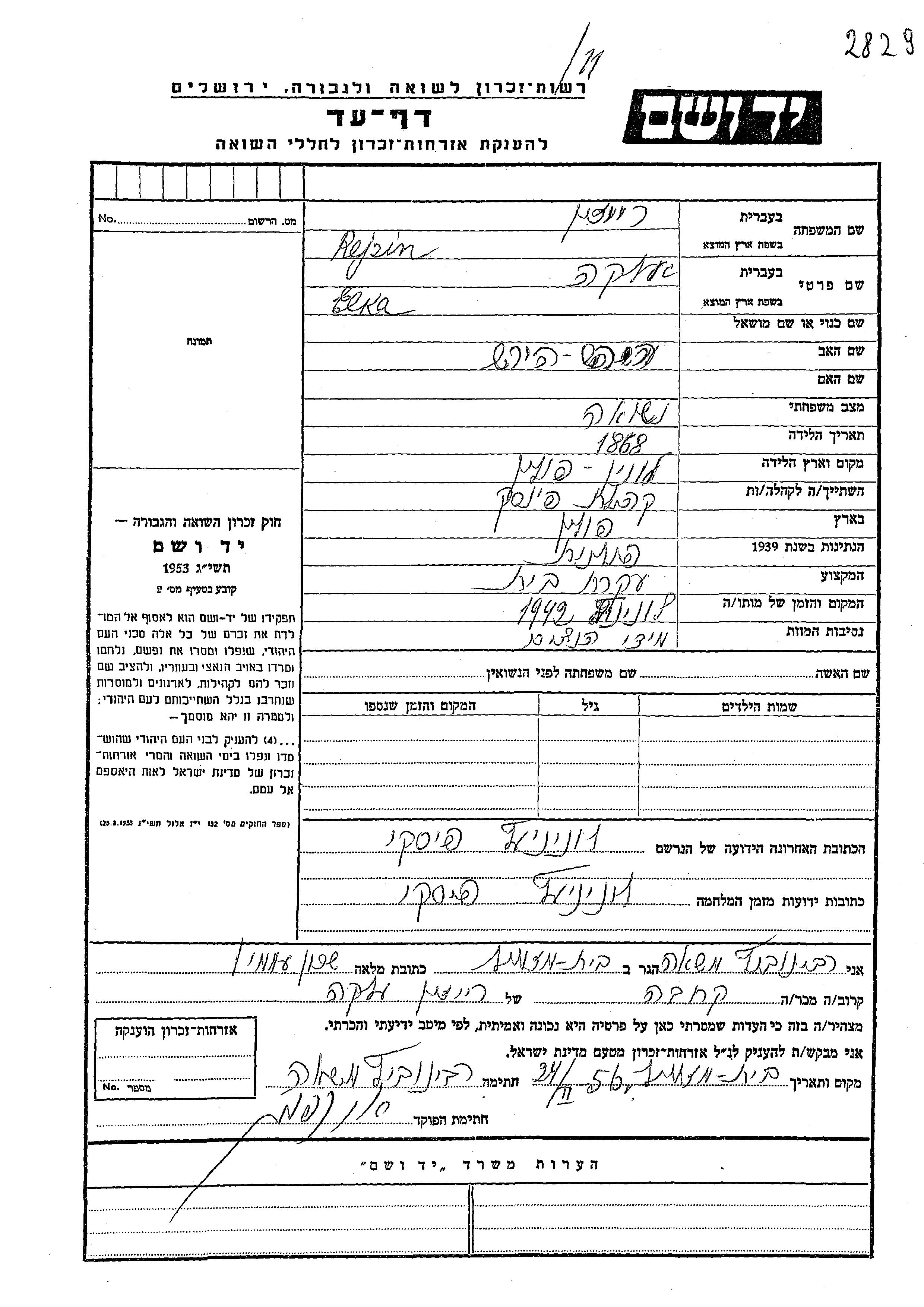 Яд Вашем - Листы свидетельских показаний Мемориального фонда