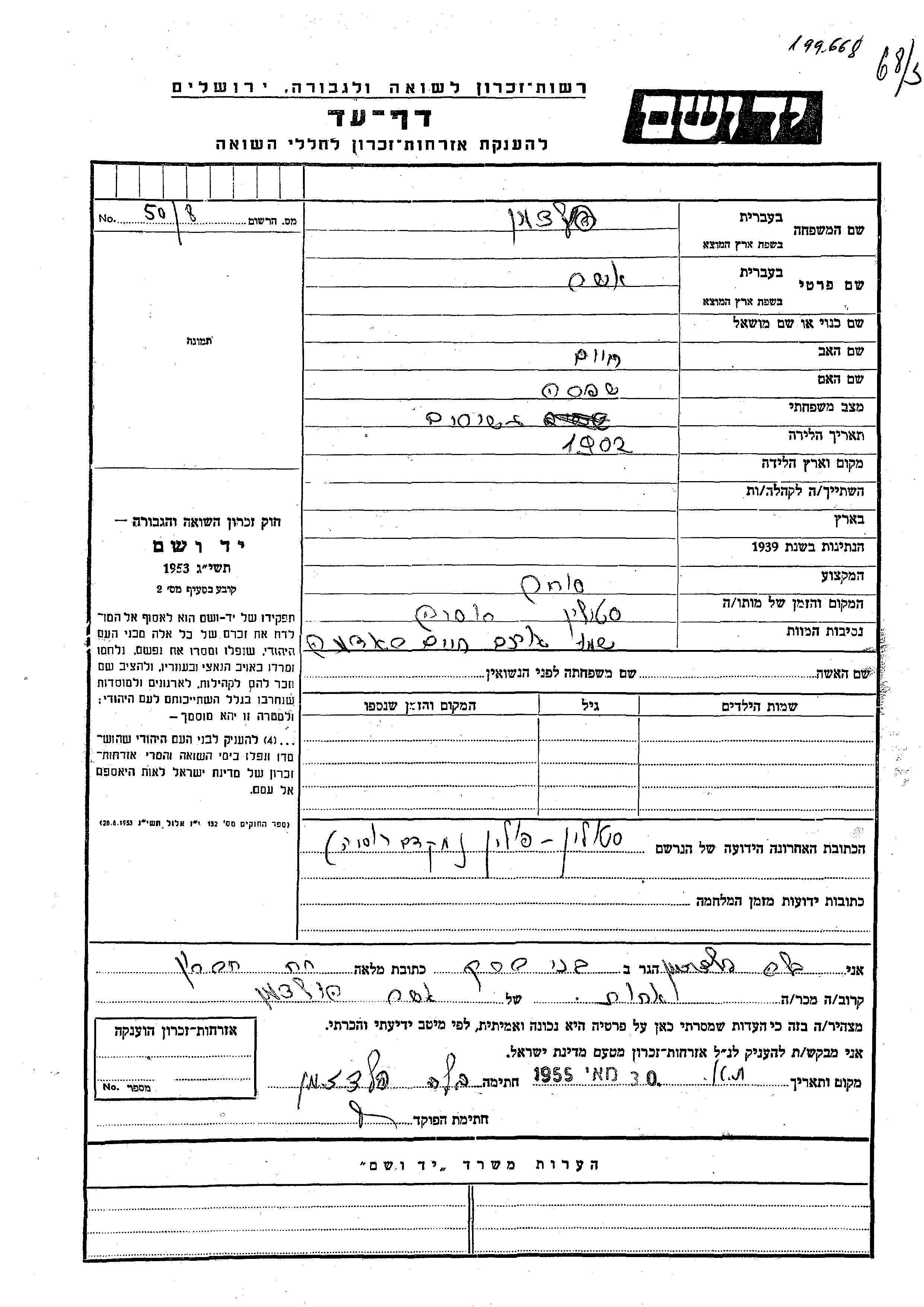 Яд Вашем - Листы свидетельских показаний Мемориального фонда
