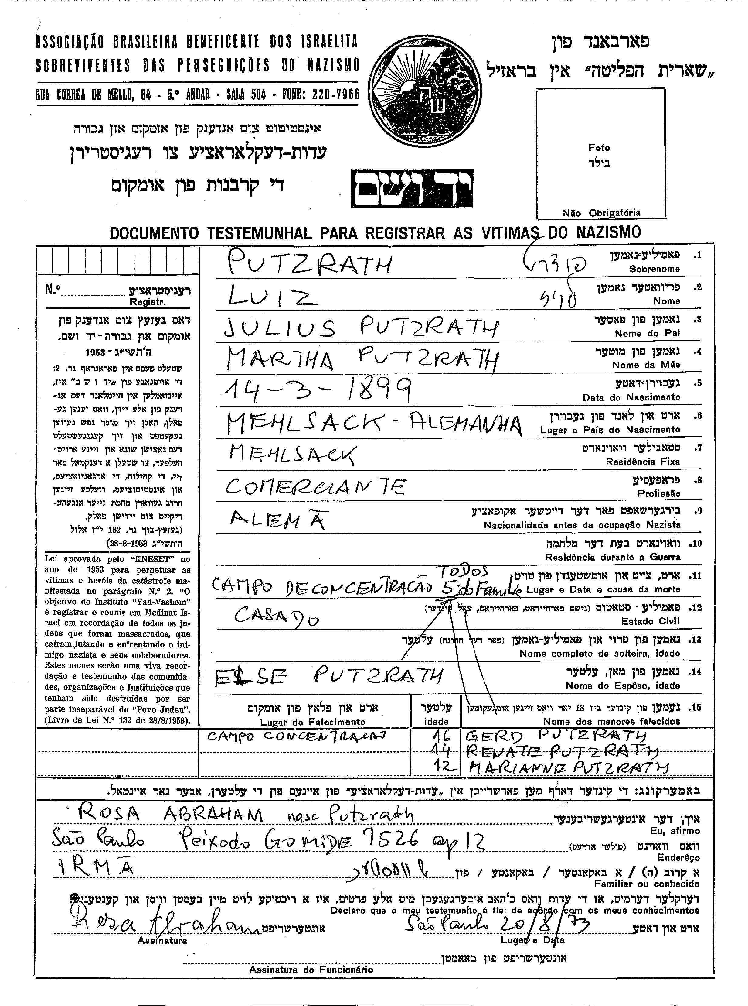 Луиз Пуцрат, место рождения: Мельзак, Германия. Отец: Юлиус, mать:Марта. Торговец / торговка. Женат / замужем. Место жительства до войны: Мельзак, Германия.