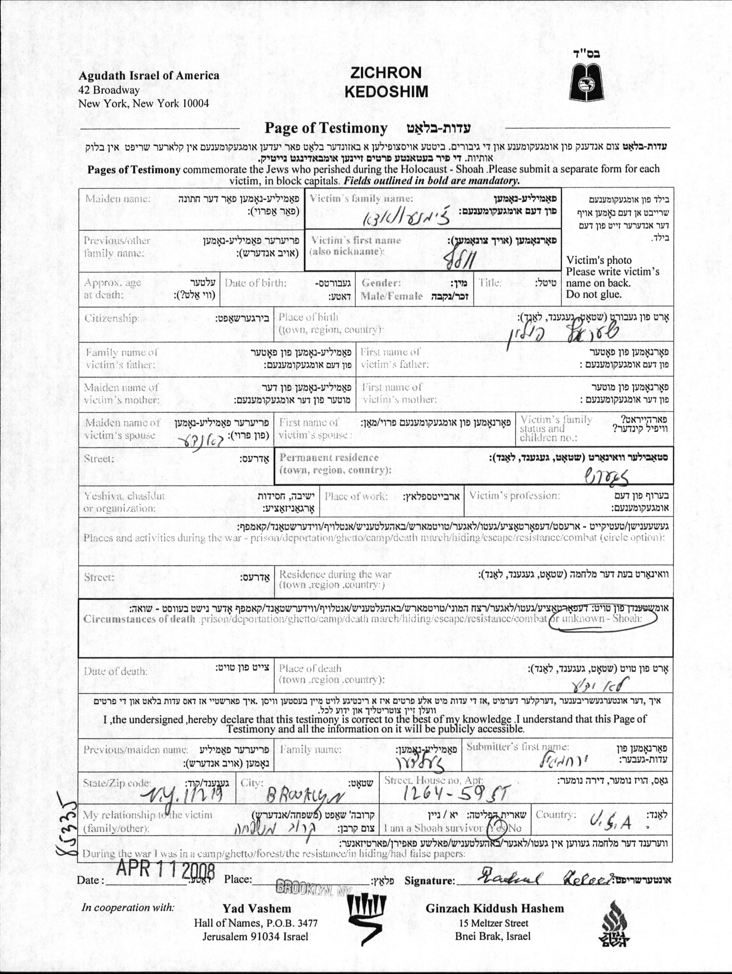 Поиск подателя Листа свидетельских показаний. Поиск по любому имени, включая уменьшительное или прозвище