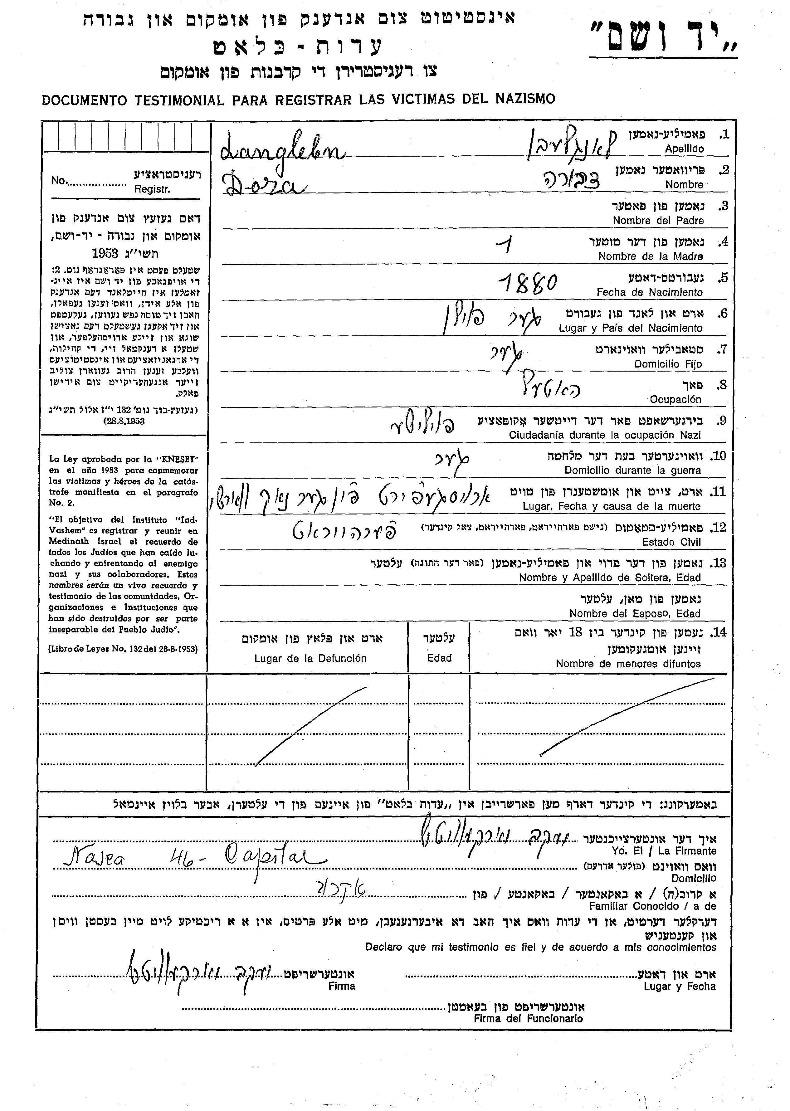 Яд Вашем - Листы свидетельских показаний Мемориального фонда