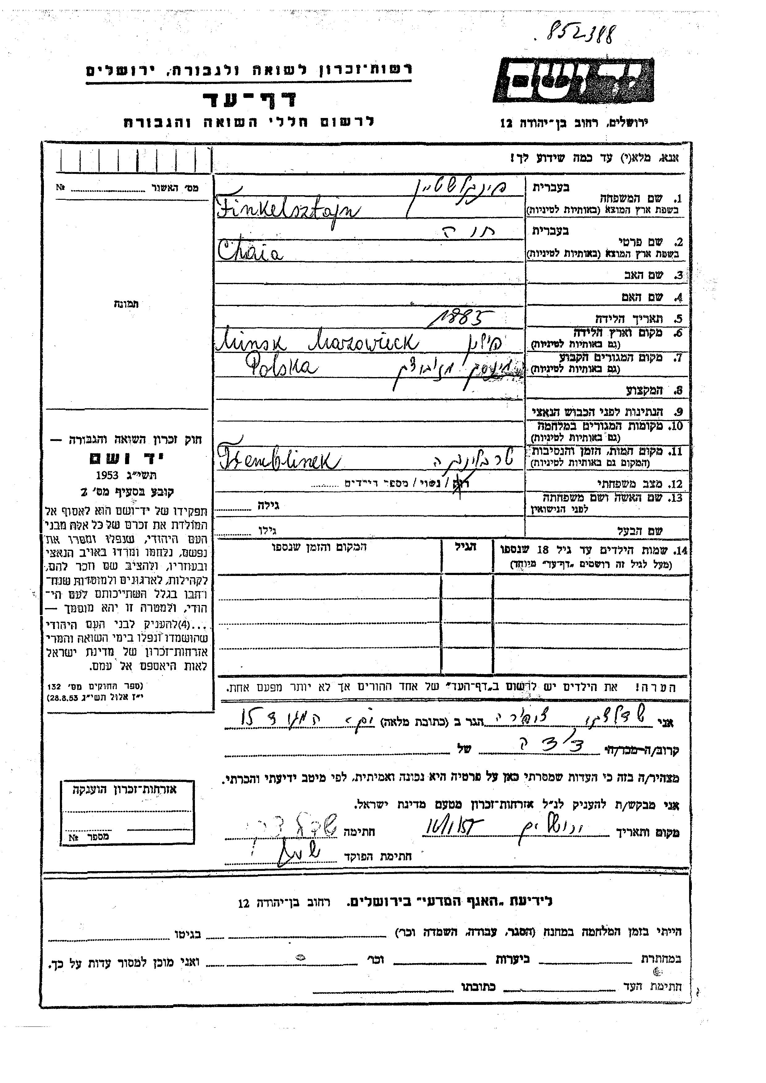 Яд Вашем - Листы свидетельских показаний Мемориального фонда