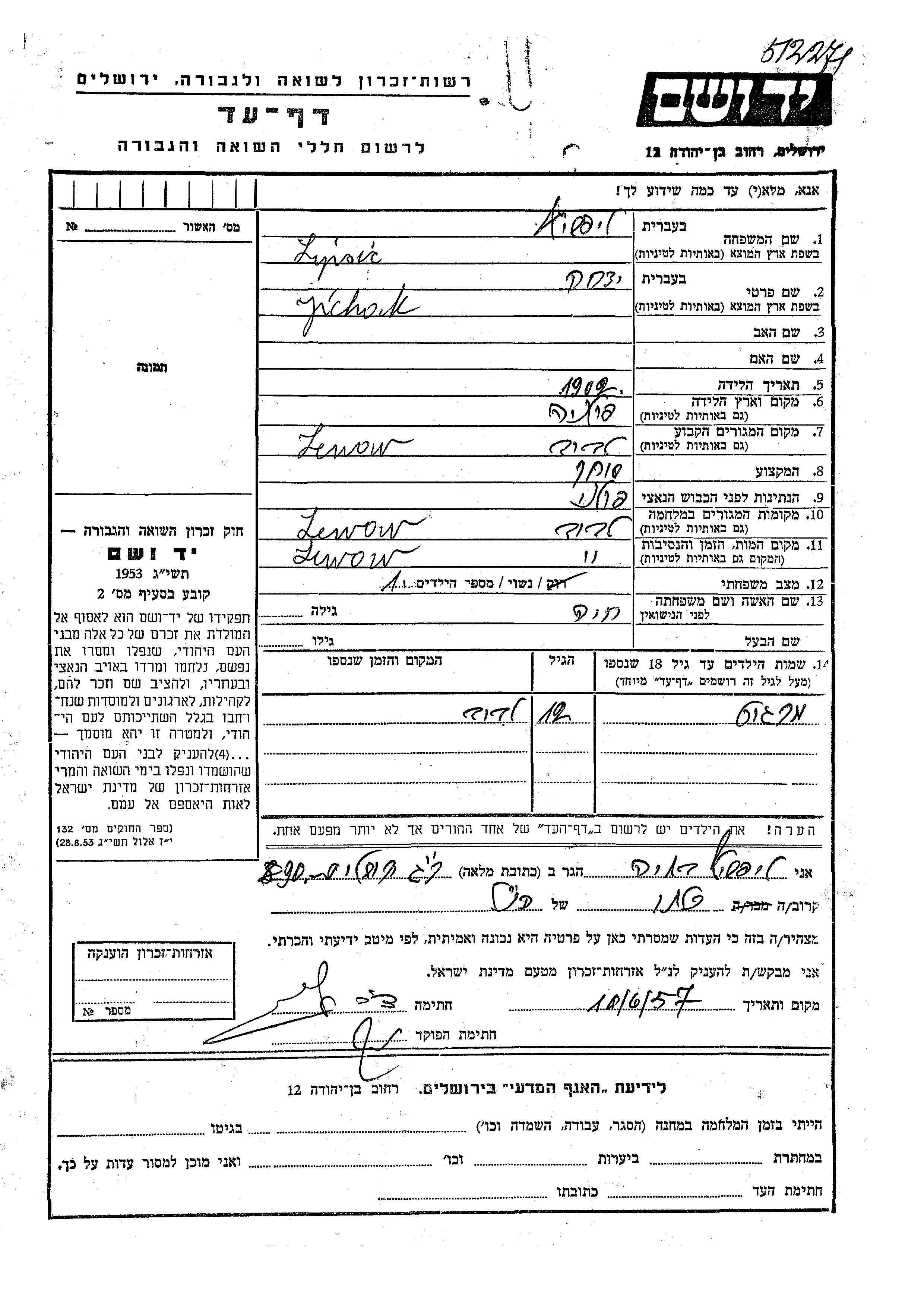 Яд Вашем - Листы свидетельских показаний Мемориального фонда