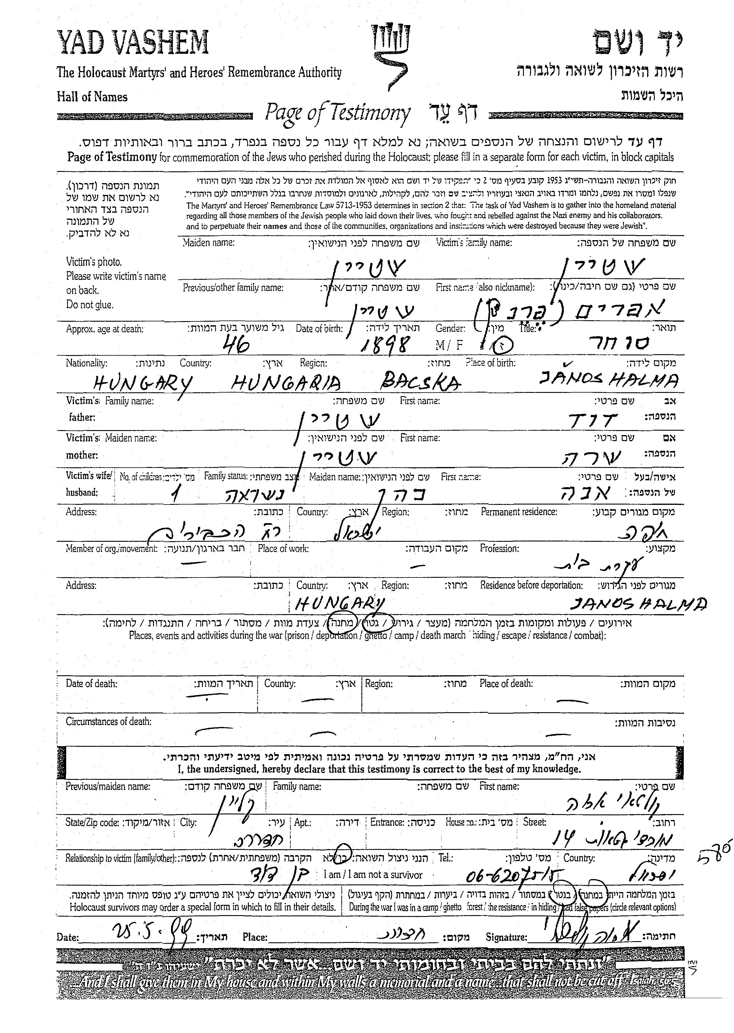 Яд Вашем - Листы свидетельских показаний Мемориального фонда
