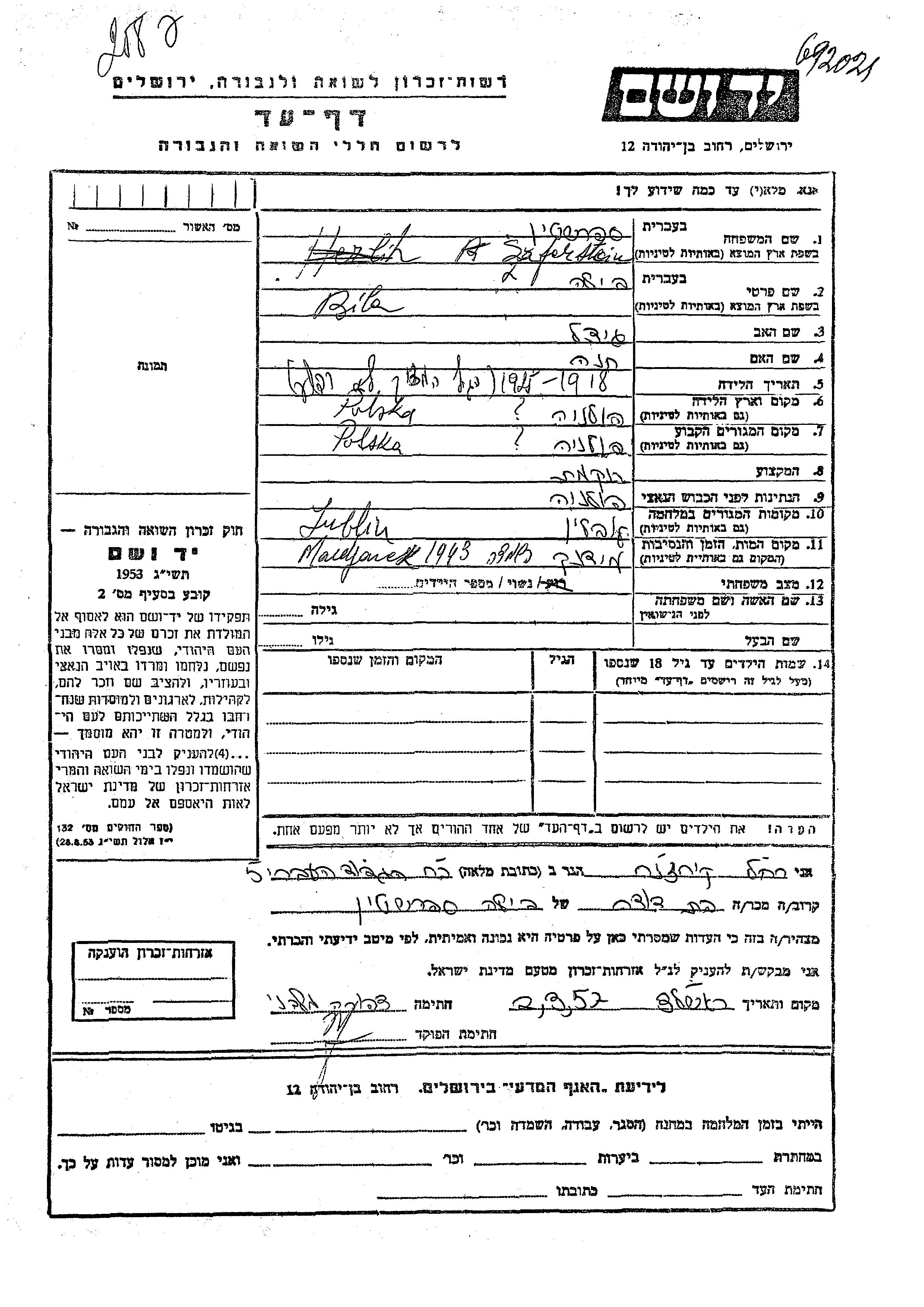Яд Вашем - Листы свидетельских показаний Мемориального фонда