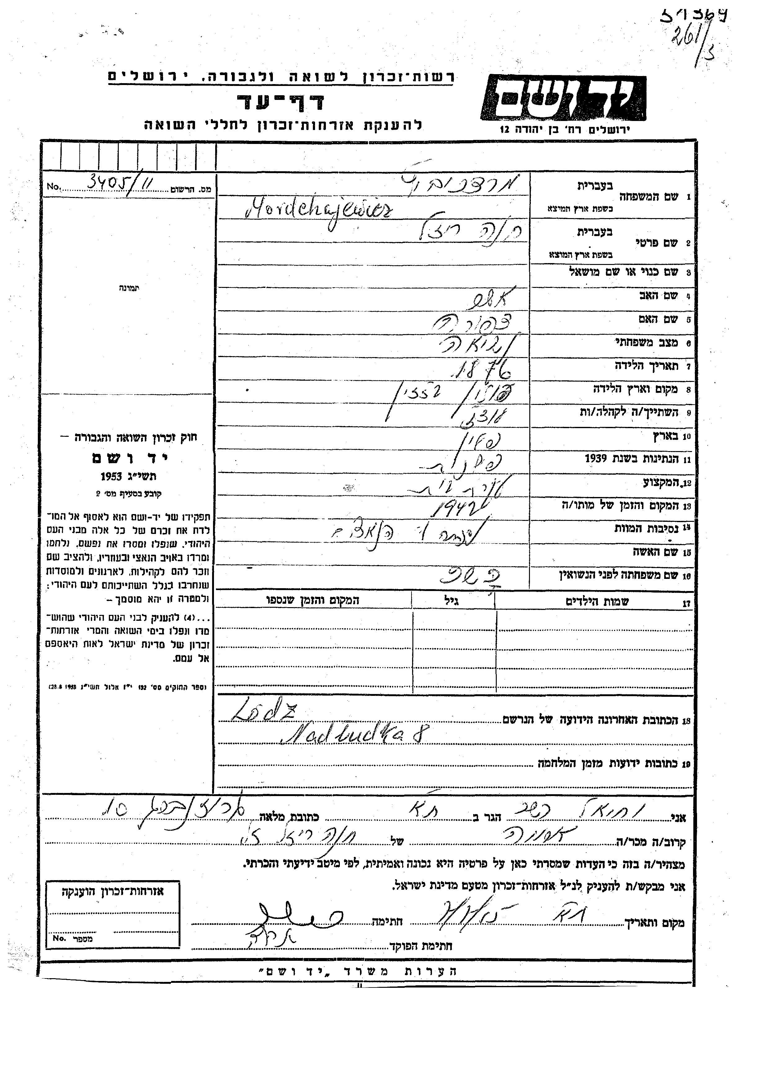 Яд Вашем - Листы свидетельских показаний Мемориального фонда