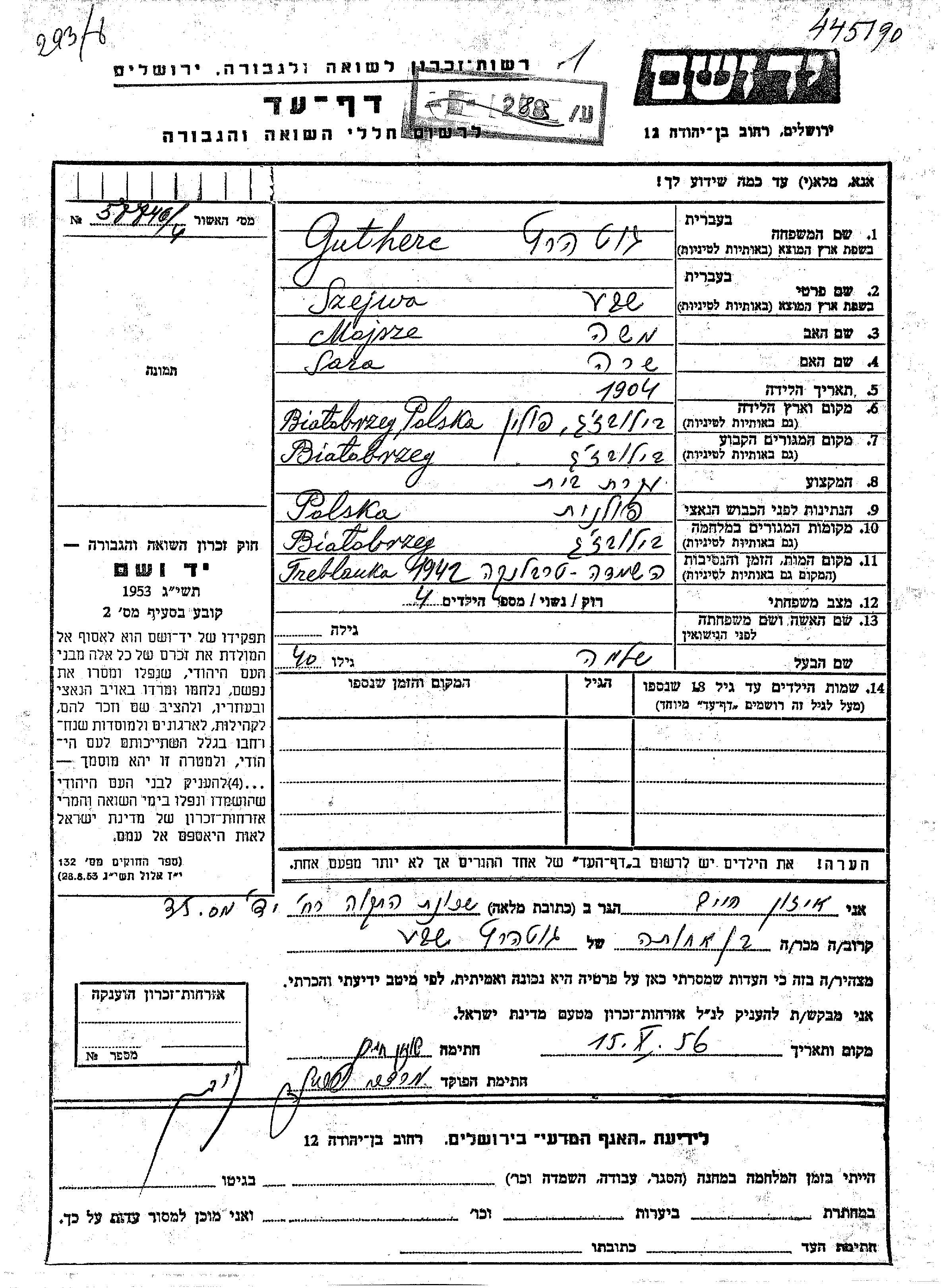 Яд Вашем - Листы свидетельских показаний Мемориального фонда